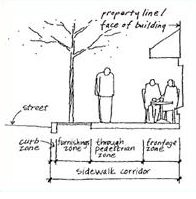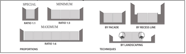 For good definition, the ratio of one increment of height to six of width is the absolute maximum, with one to three being a good effective minimum. As a general rule, the tighter the ratio, the stronger the sense of place. Very tight relationships of one to one can create special pedestrian places.
