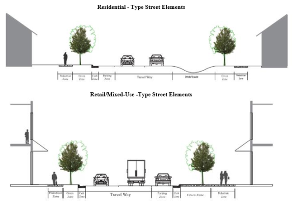 Elements of Street Design. Below are cross-sections to be used for ILLUSTRATIVE PURPOSES to explain each design element discussed in this section.