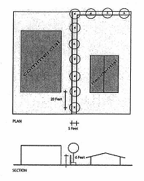 One fifteen (15) gallon evergreen tree spaced at twenty (20) feet intervals,