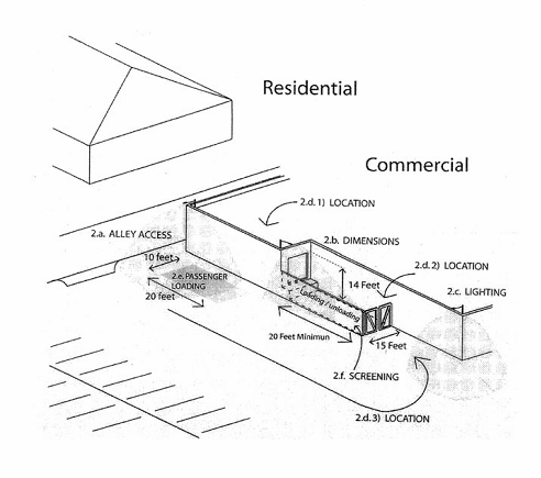 Design Standards. Off-street loading spaces shall be provided in the following manner (See Figure 2):