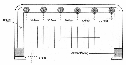 All parking structures shall be subject to approval by the planning department, and shall have a continuous ten-foot perimeter landscaping with trees every thirty (30) lineal feet; points of ingress/egress shall include a minimum six-foot wide landscaped island with accent paving in driveway; landscaping shall be permanently irrigated and maintained; and, lighting for the above ground deck shall not exceed four feet in height.