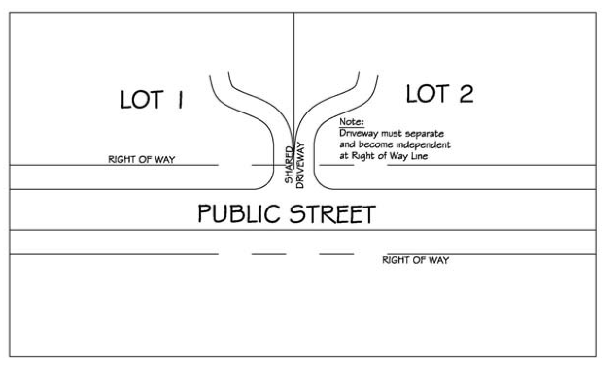 Covenants which assign driveway installation and future maintenance responsibility are submitted and recorded with the titles of the parcels which are benefitted. The city will not provide maintenance or snow plowing for common or shared access driveways; and