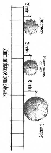 Trees having an average mature crown spread less than fifteen (15) feet may be substituted by grouping the same so as to create the equivalent of a fifteen-foot crown spread.