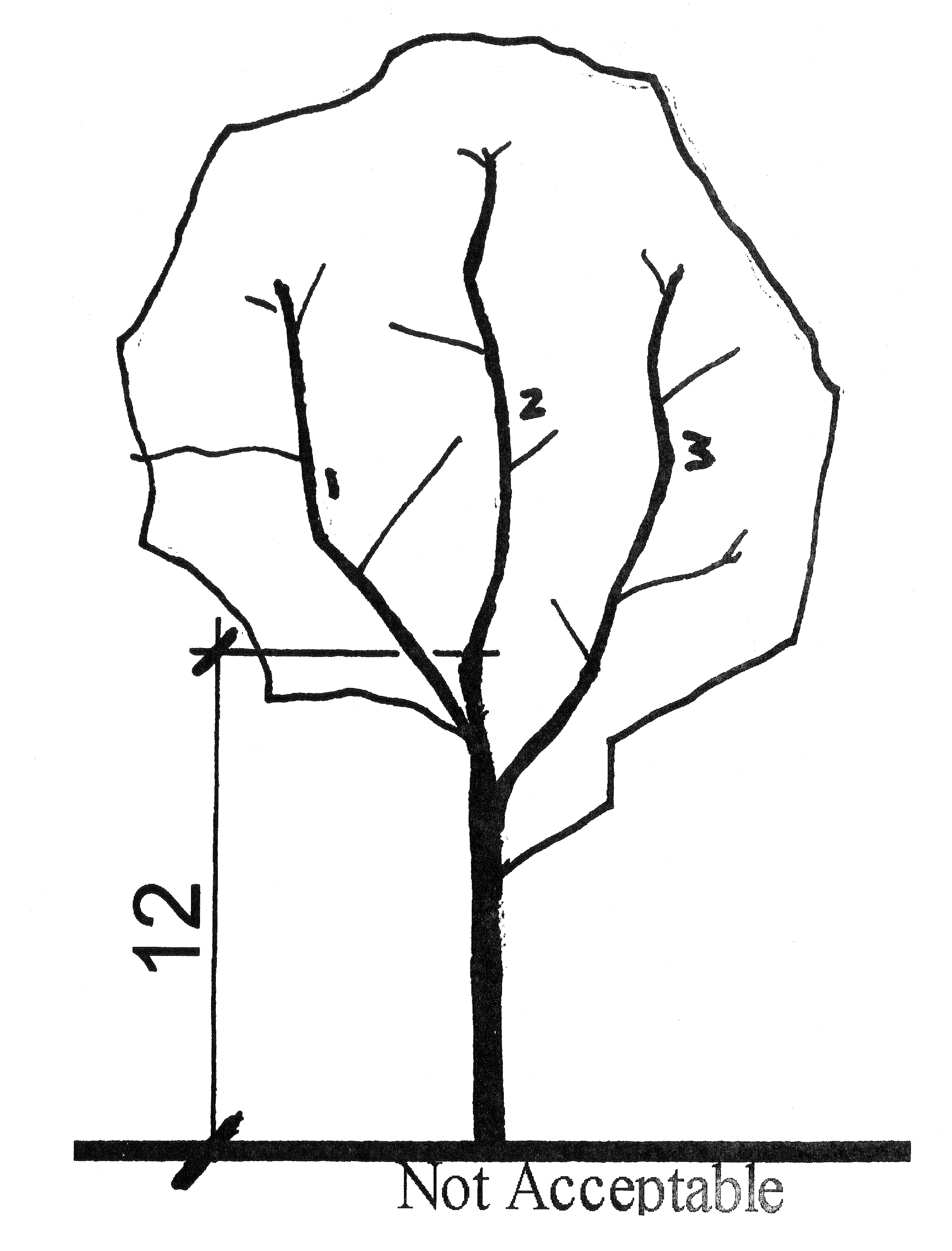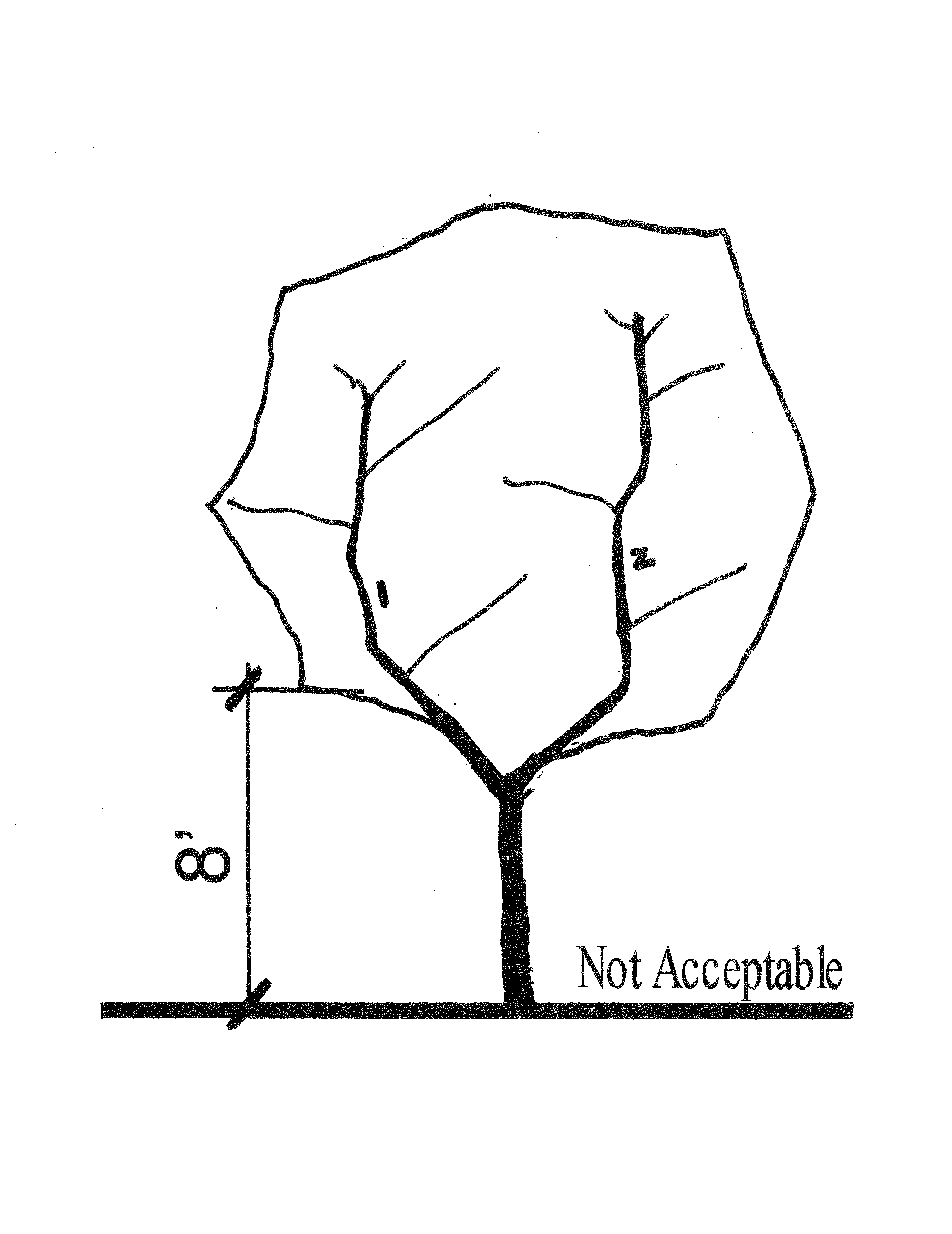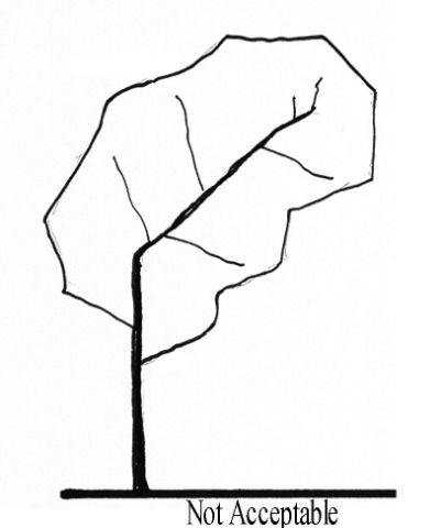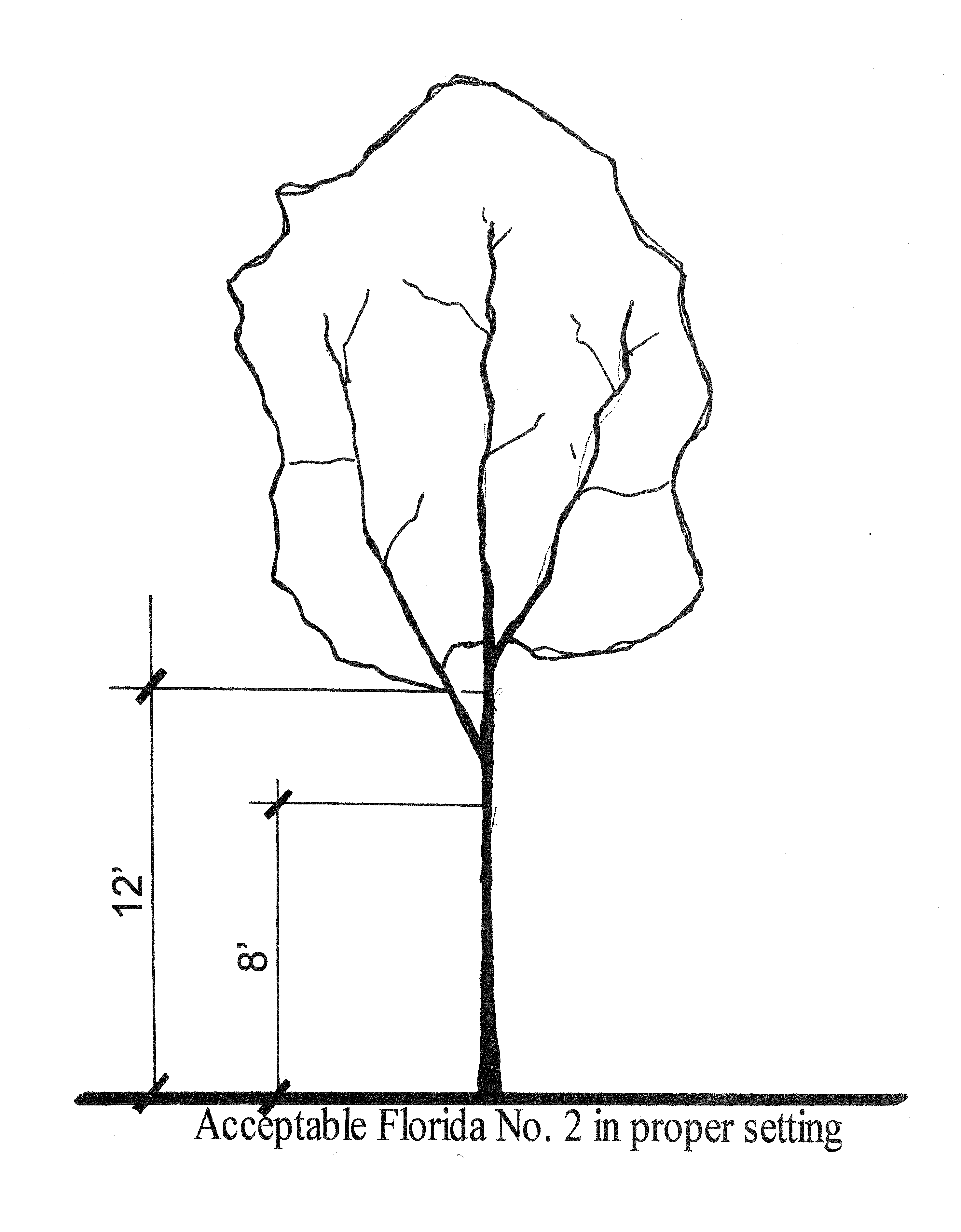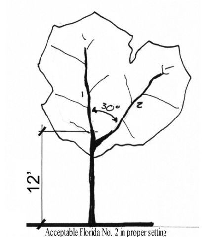 1 A "county-acceptable Florida No. 2 canopy tree" shall mean a Florida No. 2 tree with no distorted or lop-sided crown, no split leader below eight (8) feet, no more than two (2) leaders below twelve (12) feet, and no split leader below twelve (12) feet with a degree of separation that exceeds thirty (30) degrees.
