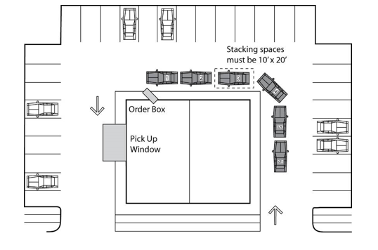 Figure 1000-1: Drive-through businesses must have adequate stacking spaces.
