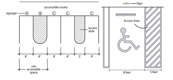 Figure 1000-2: Accessible Parking Spaces (13 feet by 18 feet) and Van Accessible Spaces (16 feet by 18 feet).