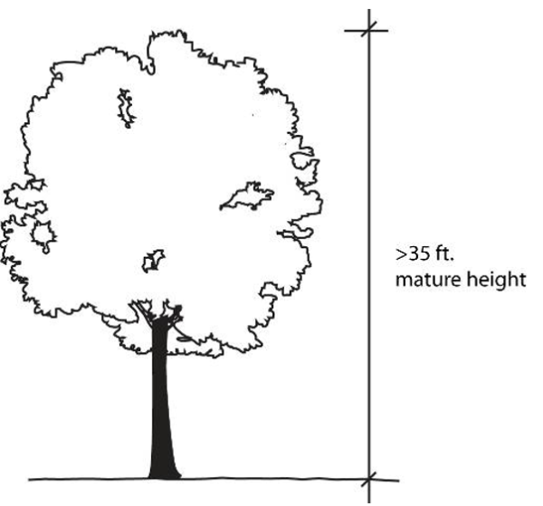 A deciduous tree with height at maturity greater than 35 feet which produces significant shade due to the size and shape of its canopy.