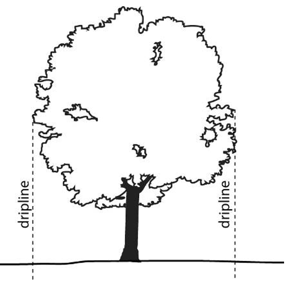 The area that a tree’s canopy shades. This area should coincide with the drip line.