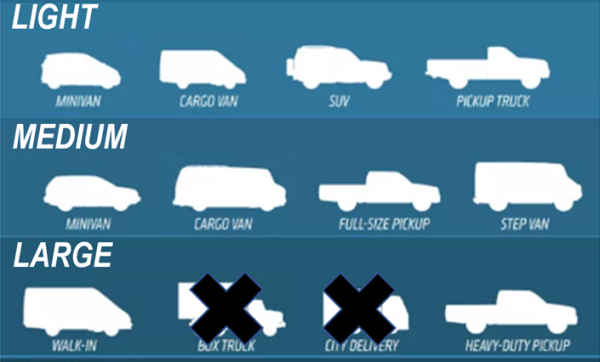 Commercial vehicles are defined as Light, Medium or Large as follows: