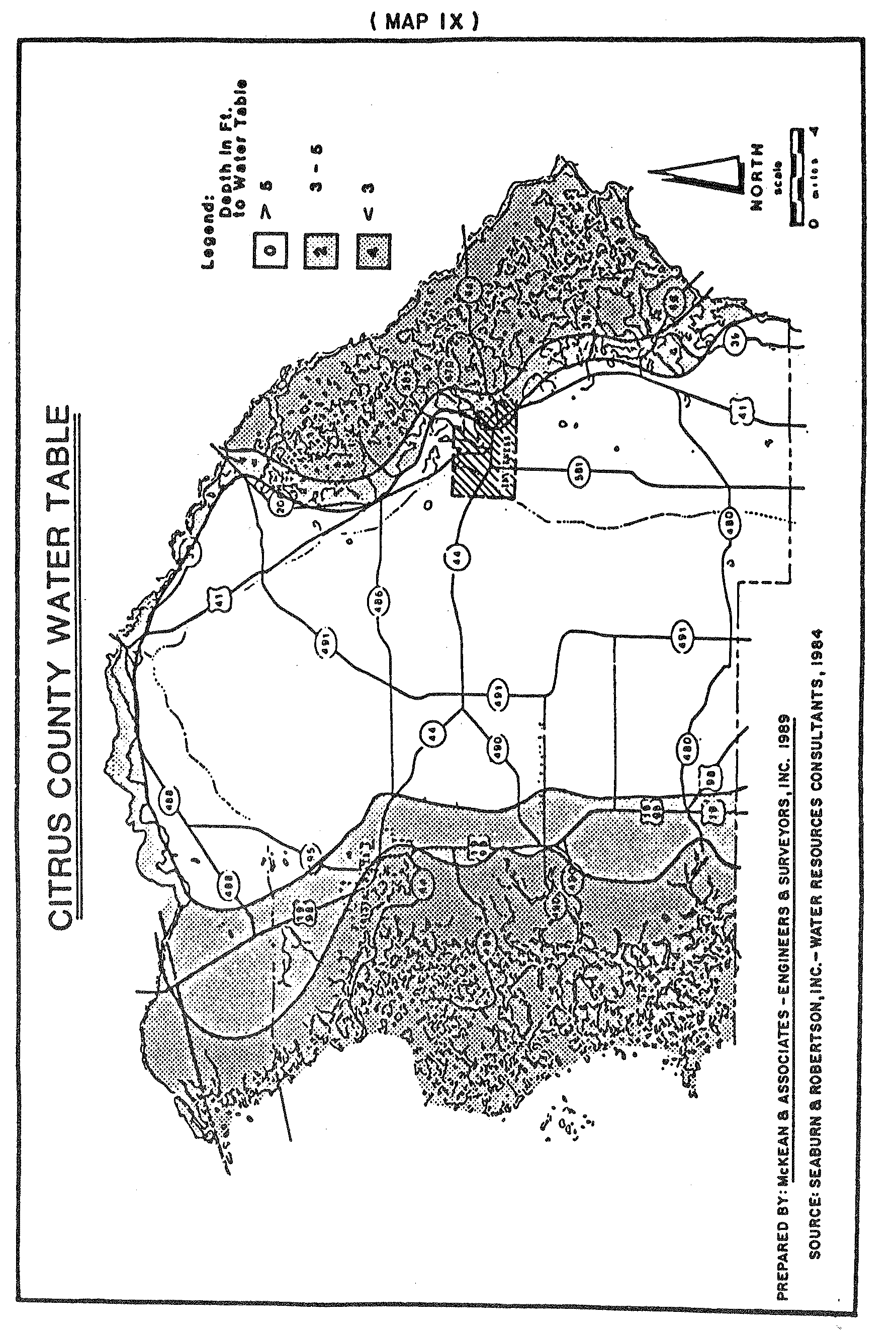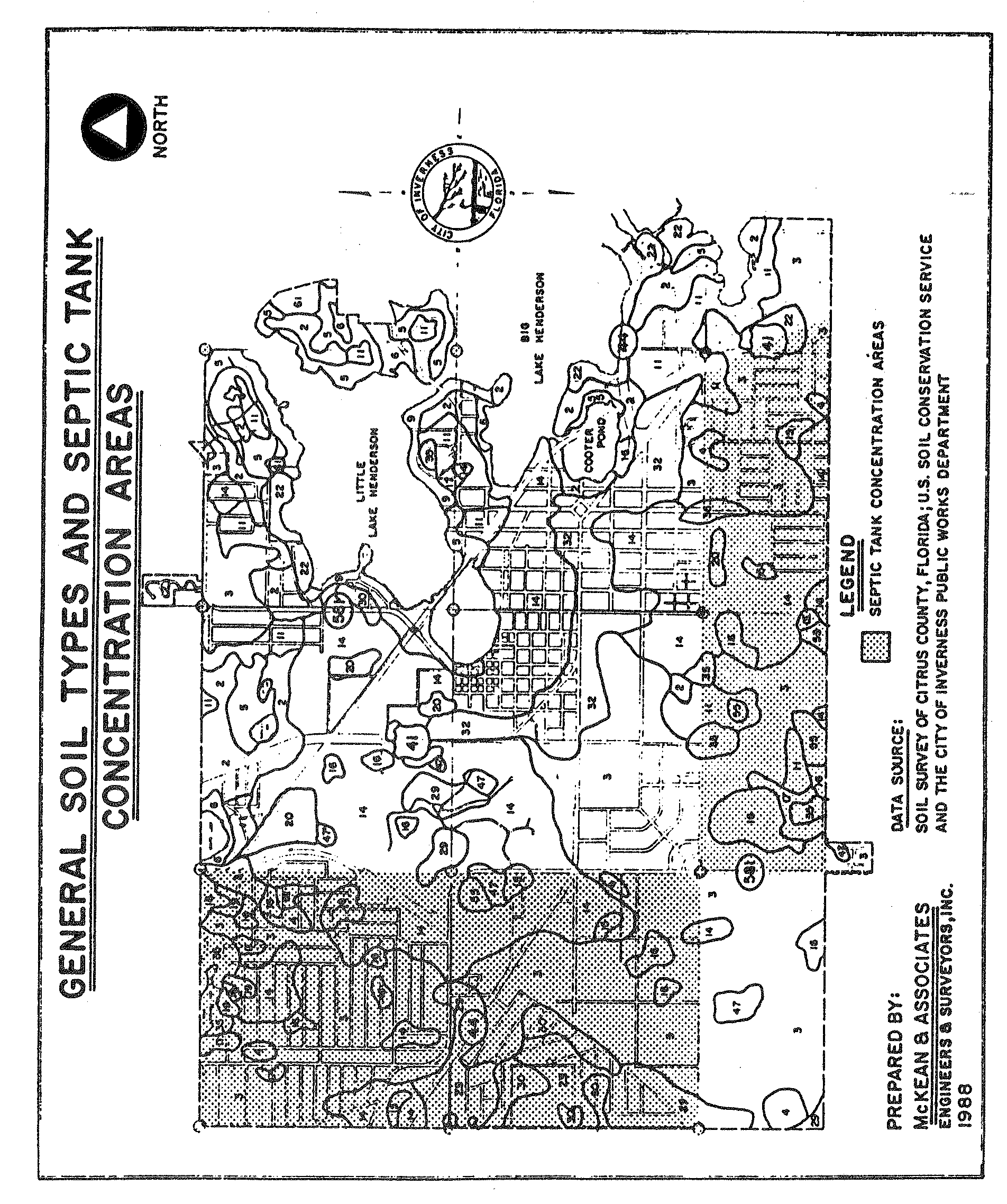 There are a variety of soil types found in the City of Inverness. (See Map VI) The major soil types found in the City are described below according to the Soil Interim Report, 1984 by the Soil Conservation Service.