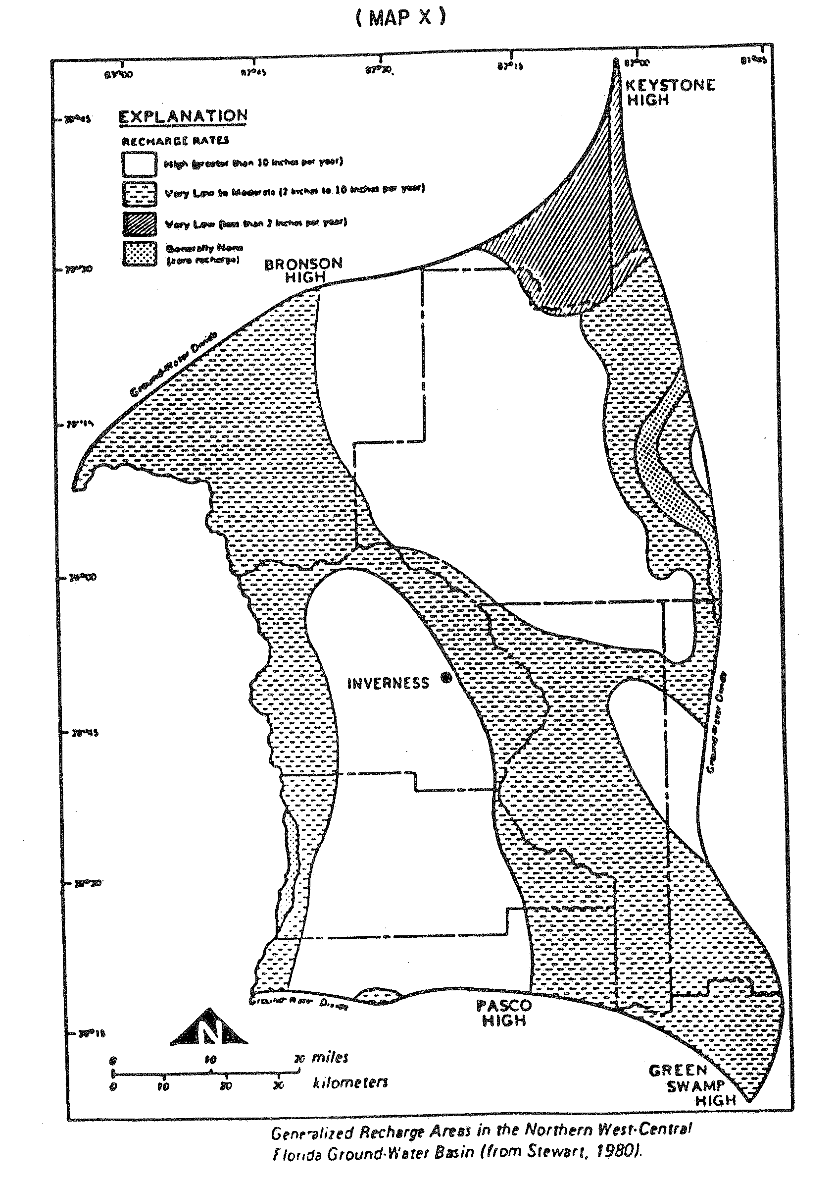 Groundwater aquifer recharge areas: Effective groundwater aquifer recharge areas shall include those areas identified as "most effective" and "moderately effective" by the Florida Department of Natural Resources. Such information shall be delineated on the Water Resource Map, 1″—1,000′, compiled by and available for public inspection at the office of the designated Administrative Official.