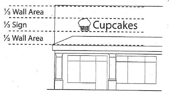 Wall signs shall utilize a consistent proportion of signage to building scale, such as ⅓ text to ⅔ wall area or ¼ text to ¾ wall area. See Figure 17.42.080-2 (Text scale).