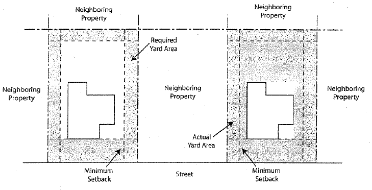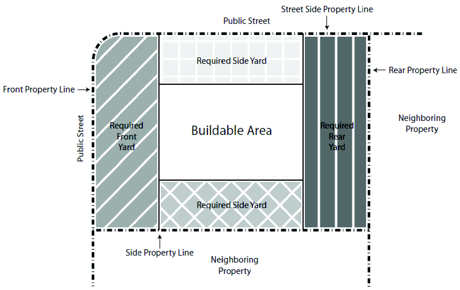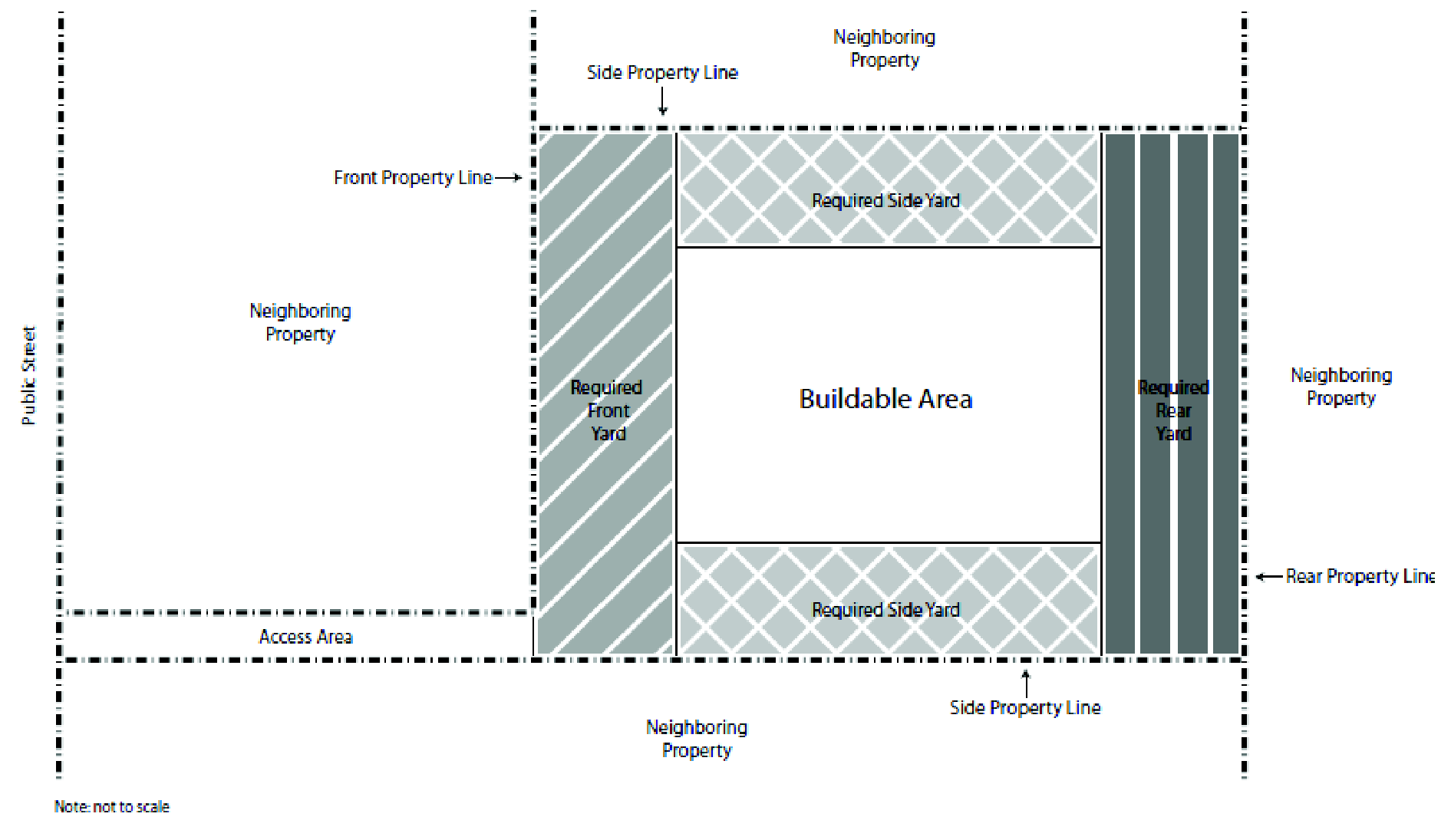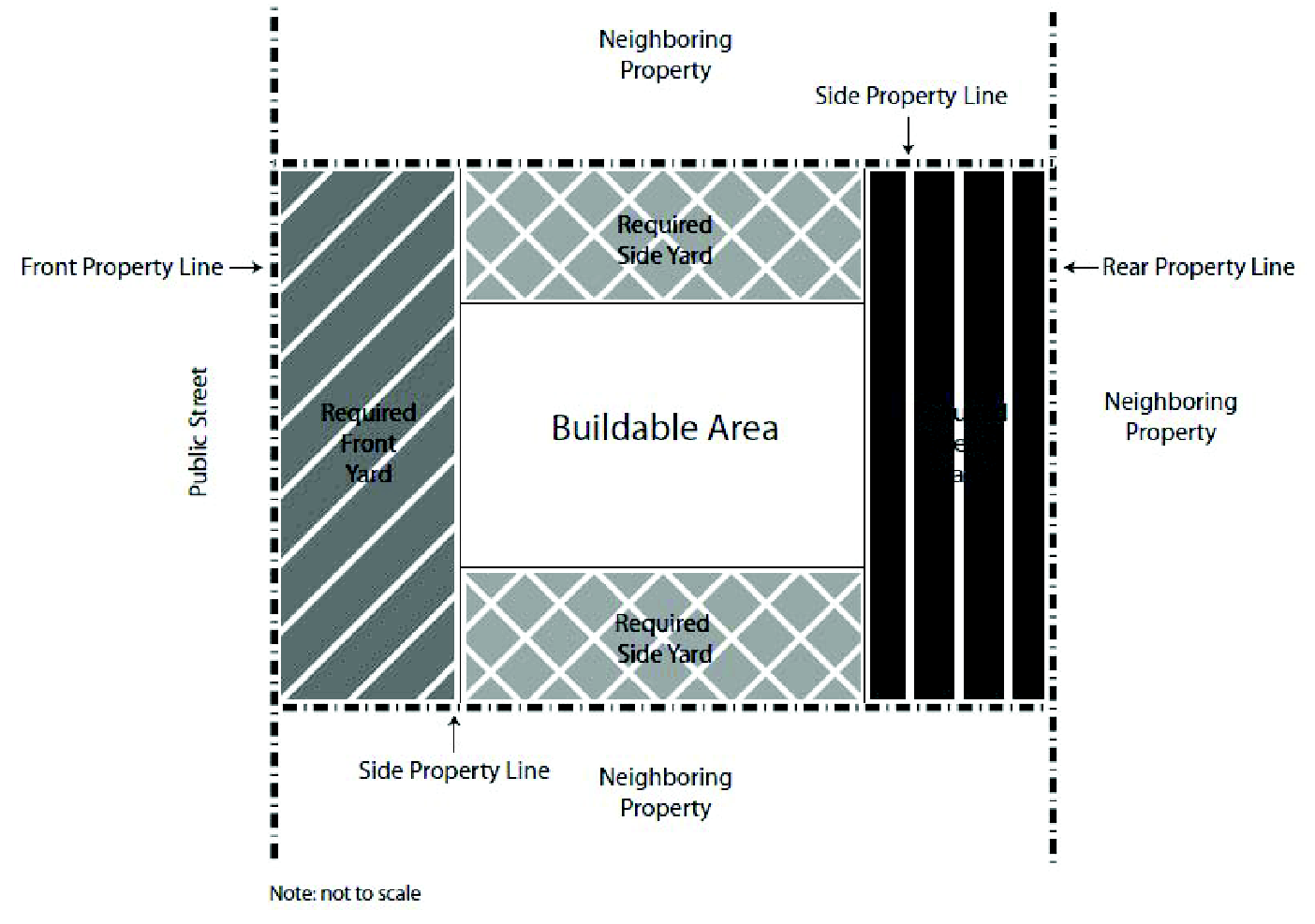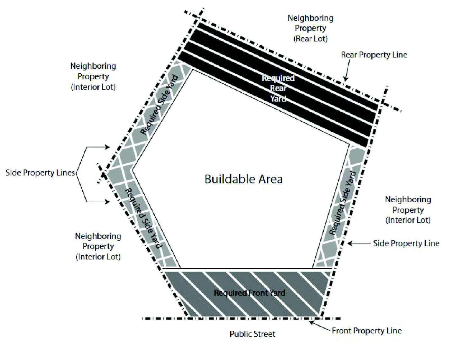 Buildable portion of a lot or buildable yard area. That portion of a lot that is not in the required yard area.