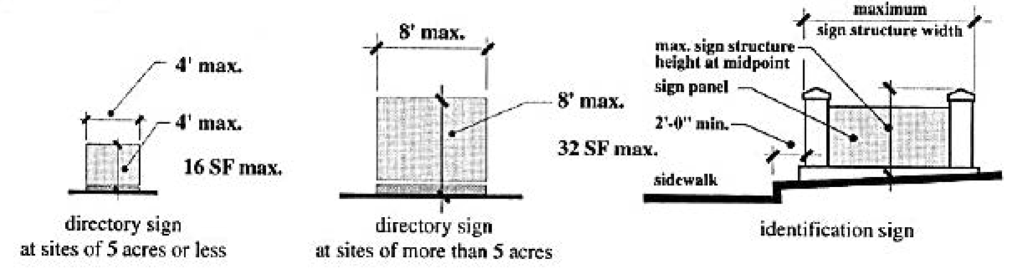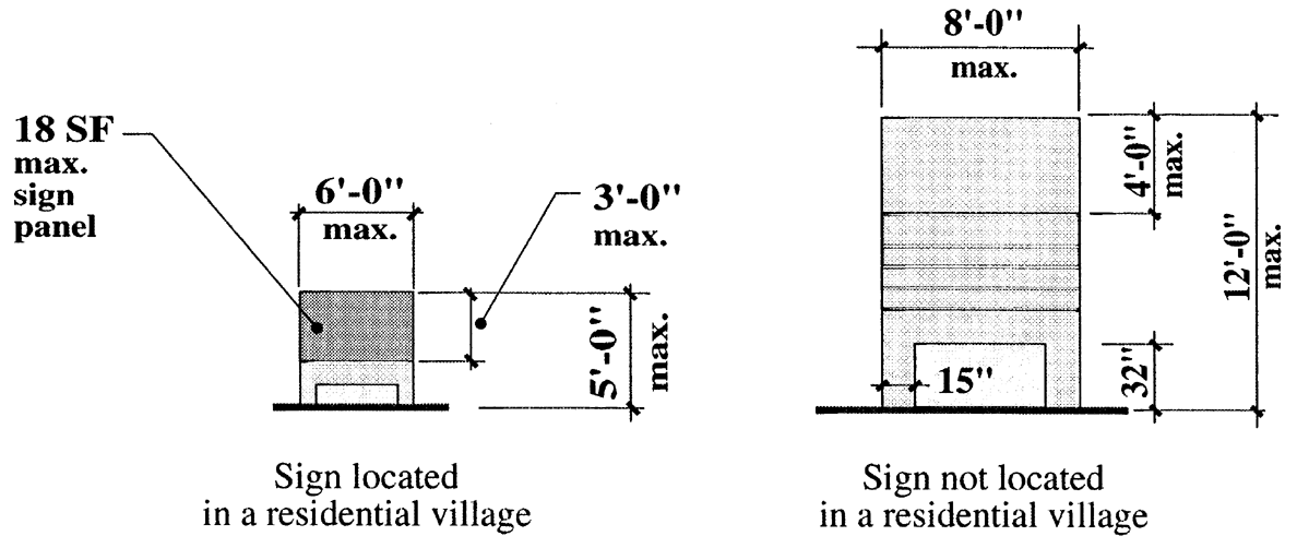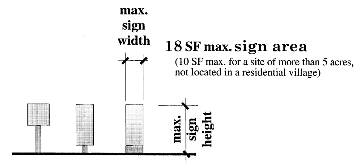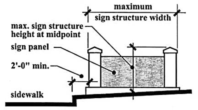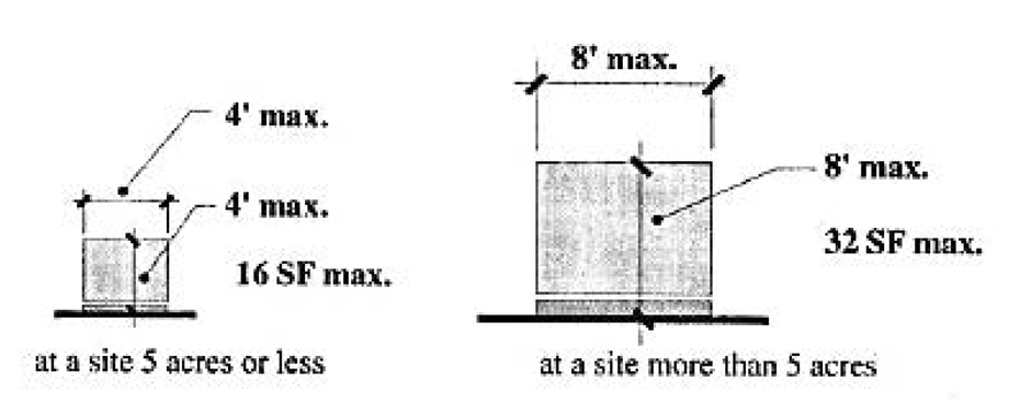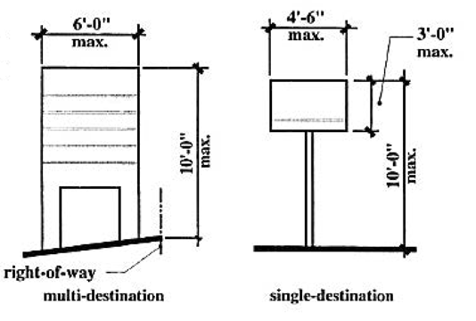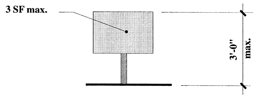 | Maximum sign height: | Top of sign may be 3 feet above the ground if located in public right-of-way within 150 feet of an intersection. |