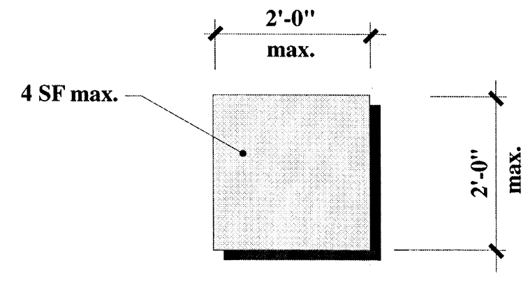 | Maximum eyebrow sign height: | Up to 40 square feet and up to 18 inches with one-half tallest letter of blank wall space around sign copy. |