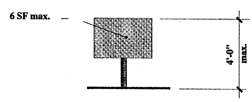 | Top of sign may be 6 feet above the ground, but not located within the public right-of-way and not within 150 feet of an intersection. | |