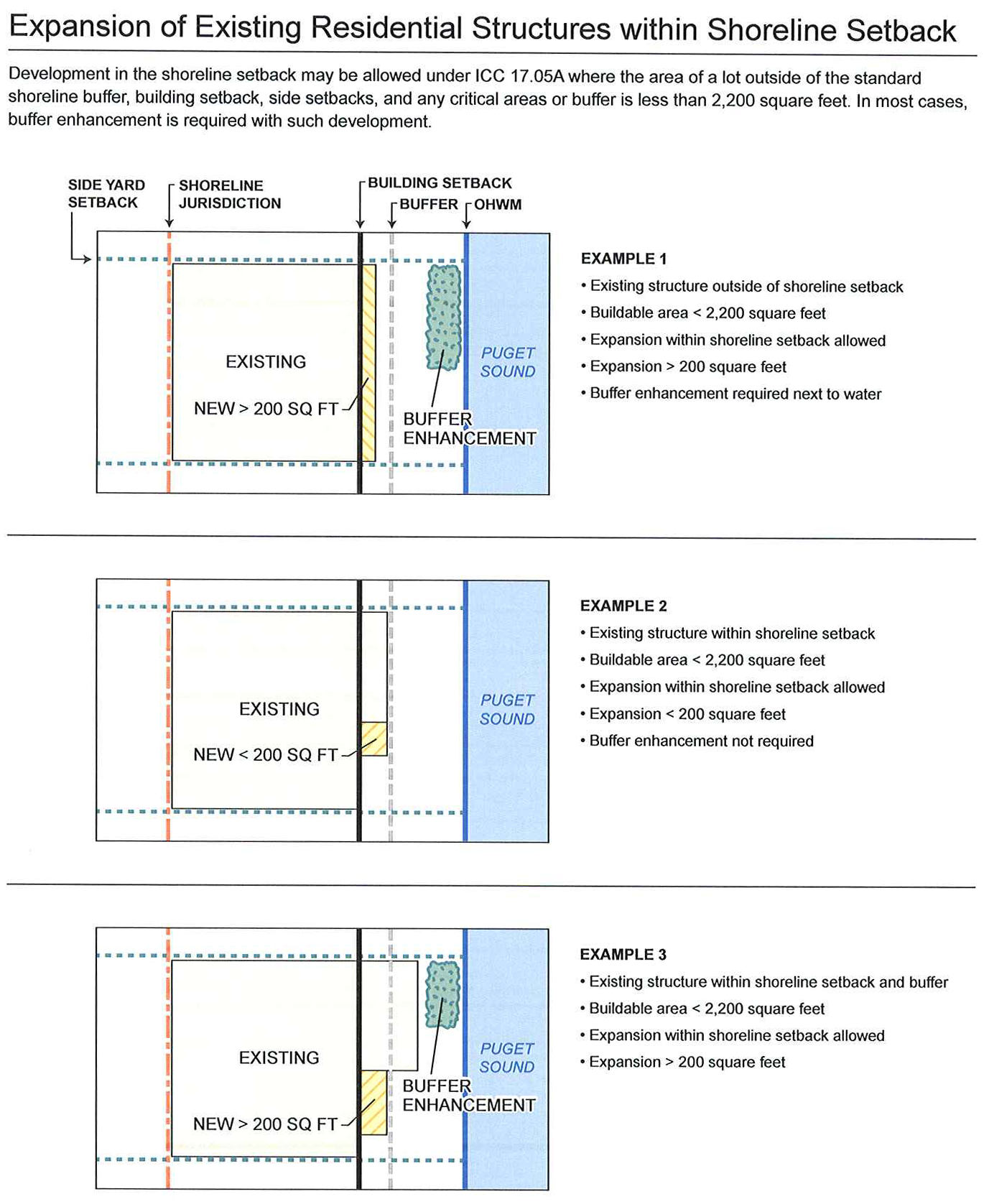 Residential and appurtenant structures (excluding bulkheads, overwater structures or other shoreline modifications) that were legally established and are used for a conforming use, but that do not meet current standards for density, lot size, setbacks and buffers shall be considered a conforming structure. Redevelopment, expansion, or replacement of these residential structures shall be consistent with this Shoreline Master Program, including requirements for no net loss of shoreline ecological functions. Nothing in this section: (a) Restricts the ability of this Master Program to limit redevelopment, expansion, or replacement of overwater structures located in hazardous areas, such as floodplains and geologically hazardous areas; or (b) affects the application of other federal, state, or local government requirements to residential structures.