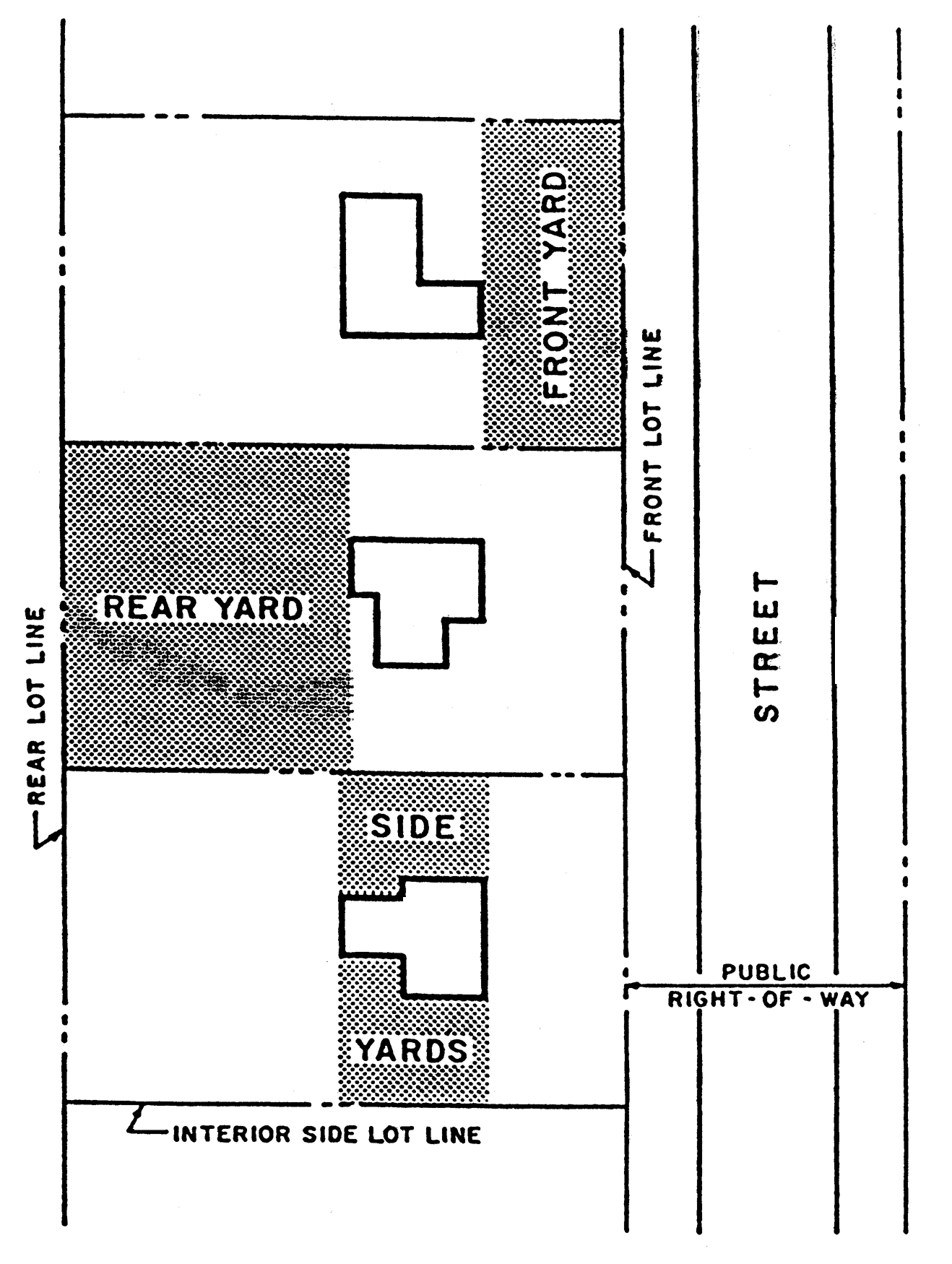 Yard means a required open space of prescribed width or depth on the same land with a building or group of buildings, which open space lies between the building or group of buildings and the nearest lot line and is unoccupied and unobstructed by a principal structure or portion of a structure from the ground upward, except as provided otherwise in this chapter.