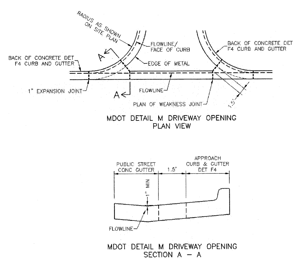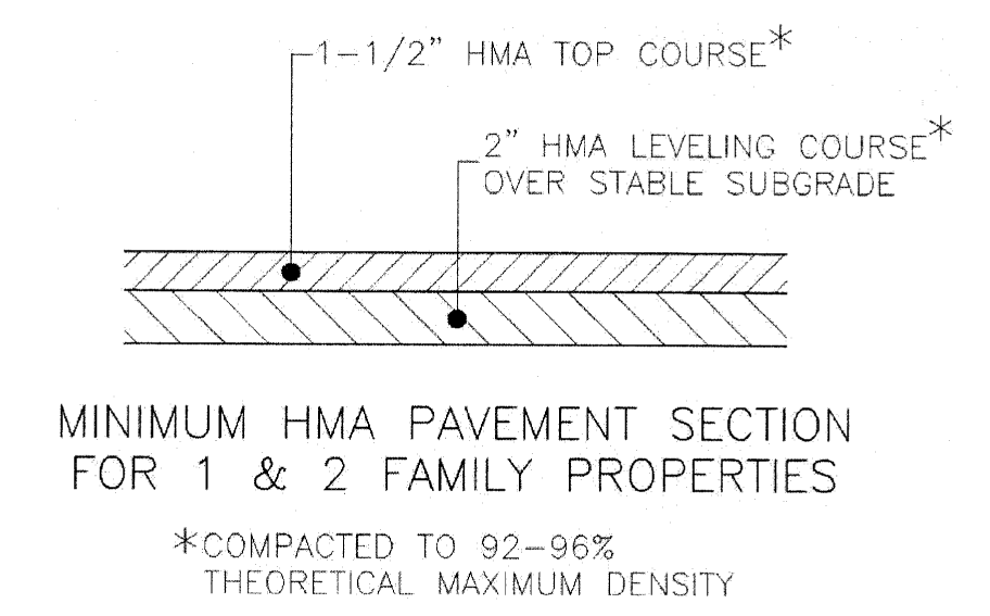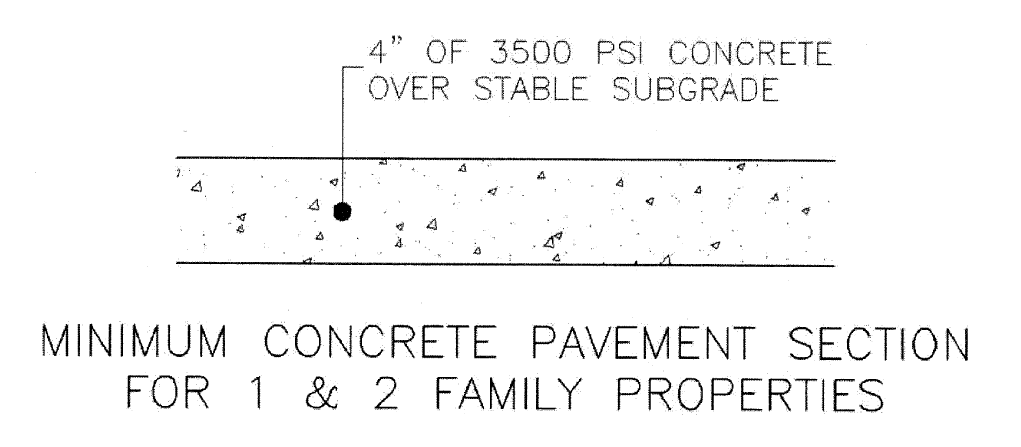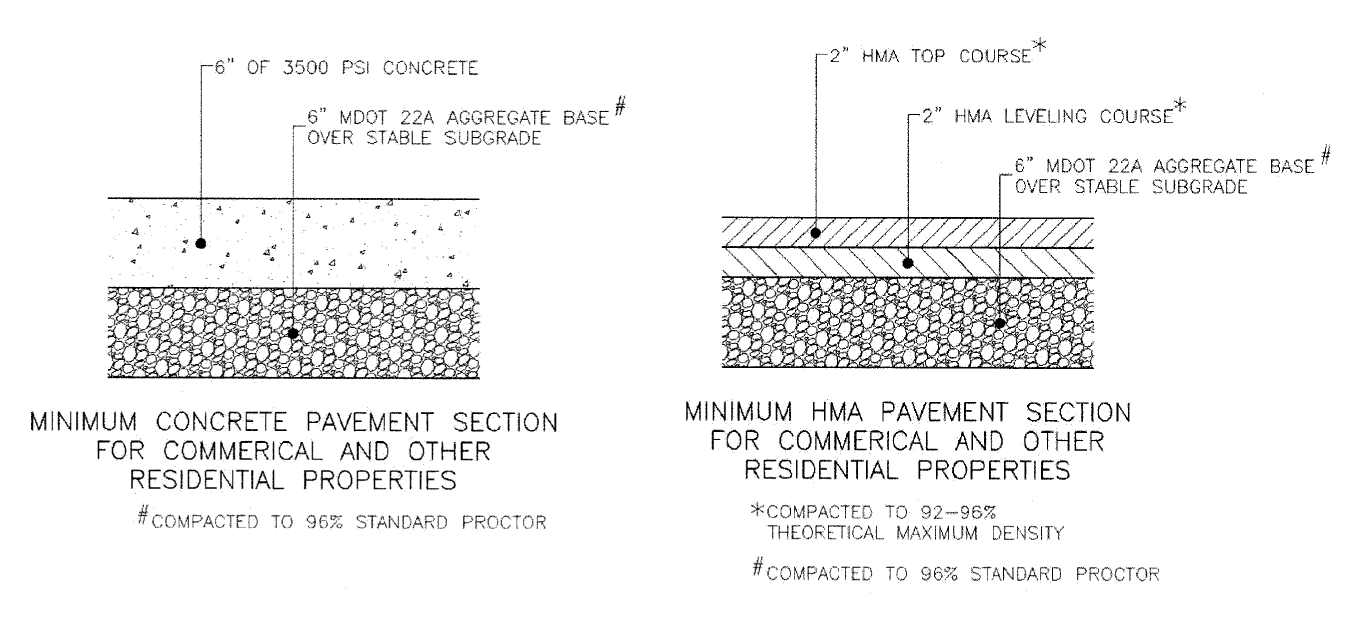All residential driveways shall have a concrete approach and a hard-surfaced driveway of concrete or plant-mixed bituminous material in accordance with specifications of the city or other applicable agencies such as the Michigan Department of Transportation. Approaches must be six (6) inches thick, concrete, with the sidewalk floating separate from approaches. The minimum asphalt depth for driveways must be three (3) inches. The minimum concrete depth for driveways must be four (4) inches. Up to two (2) dwellings may be permitted to share a driveway provided it complies with these construction standards.