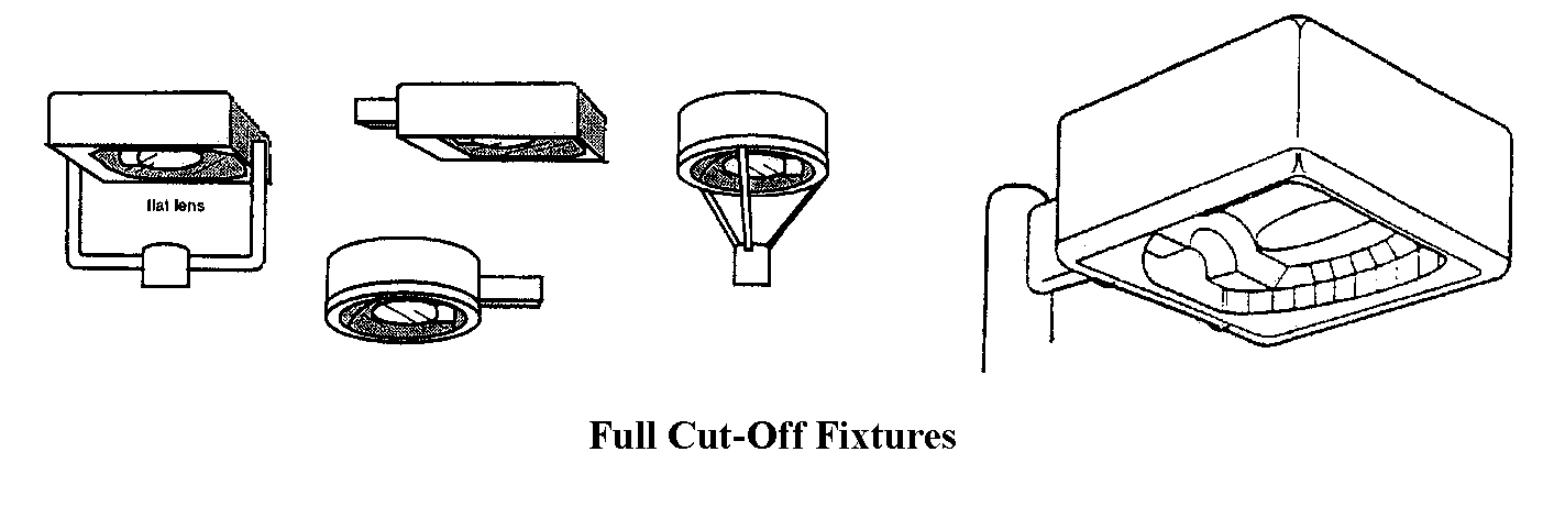Full cutoff luminaire: Outdoor light fixtures shielded or constructed so that no direct light rays are emitted by the installed fixture at angles above the horizontal plane.