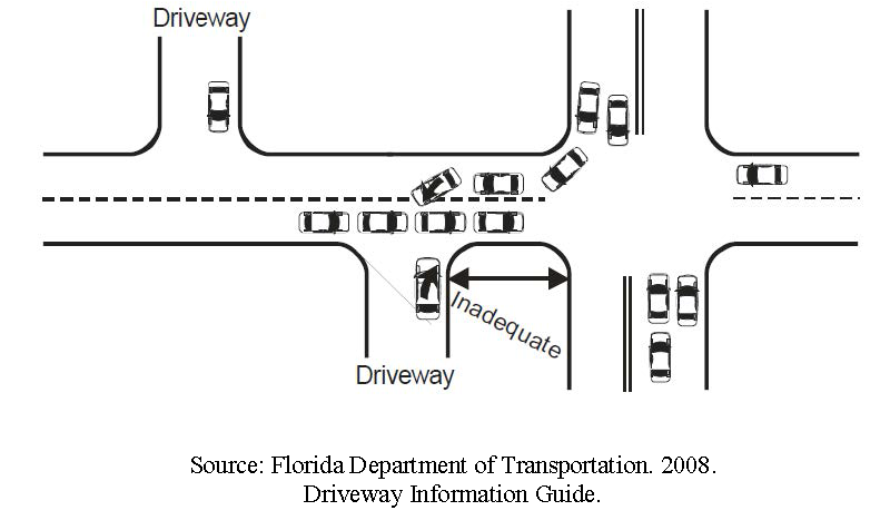 Locations. Driveways will be restricted to locations where movements into and out of them can occur in a safe and orderly manner, subject to the approval of the public development director.