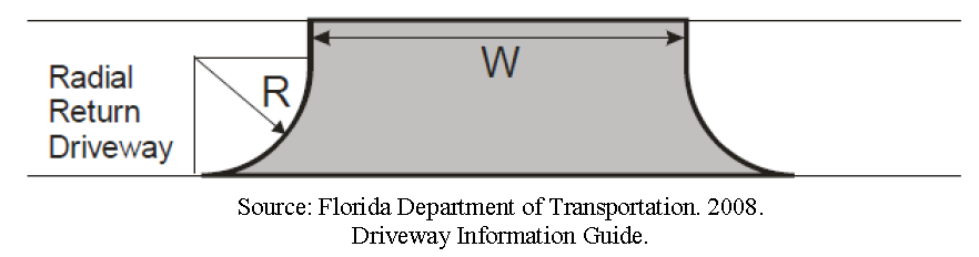 Driveway apron. Installation of an asphalt or concrete driveway apron may be required for any nonresidential driveway connecting to a county road. When a driveway apron is required, the minimum driveway radius for a shall be 15 feet for commercial and multi-family residential development and 25 feet for industrial development.