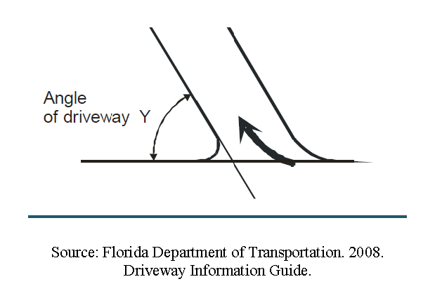 Angle of intersection with street. Right angled (80 degrees to 100 degrees).