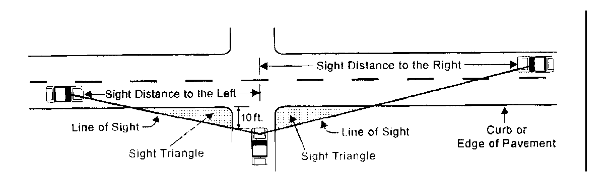 Sight visibility clearance. With the exception of sign posts and other structures less than eight inches in diameter, structures and landscaping shall not exceed three feet in height within a triangle measuring 20 feet along the edge of a driveway and 20 feet along the street right-of-way line.