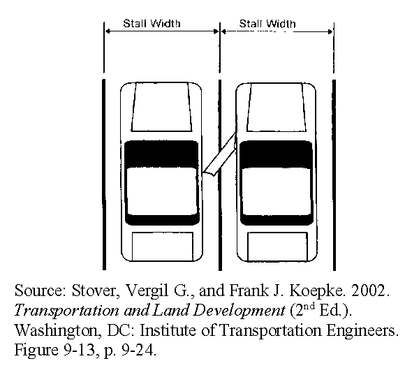 There must be separation of at least two feet between parking spaces that abut one another front to front or back to back.