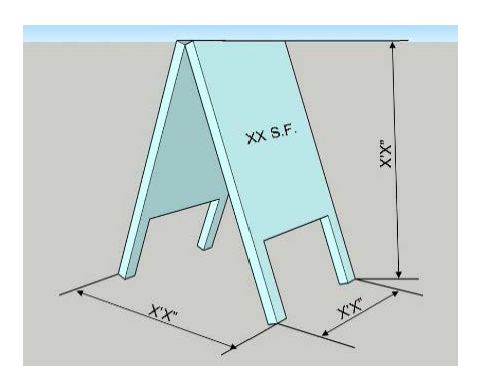 Sandwich board sign: A portable sign that typically consists of two faces connected and hinged at the top and with a message targeted to pedestrians. They are also commonly referred to as A-frame signs.