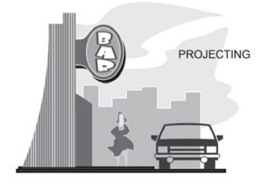 Projecting sign: A sign affixed to a wall and extending more than four inches from the surface of such wall, usually perpendicular to the wall surface.