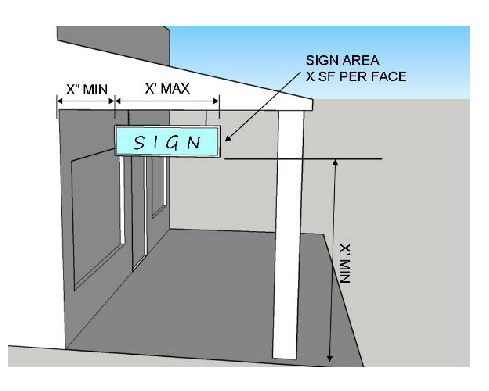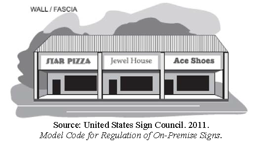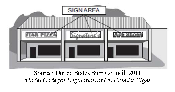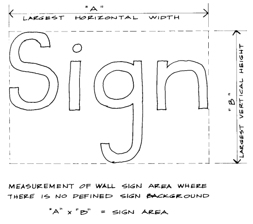 Description. Definitions of different aspects of the area and height of signs are necessary in order to adequately regulate signs. Signs may be regulated on the basis of the percentage of area of the surface on which it is placed (as in the case of a window or wall sign), and signs may also be regulated on the basis of the linear frontage of a parcel or building, as appropriate. Ground signs may have more than one face, while wall signs are one-sided.