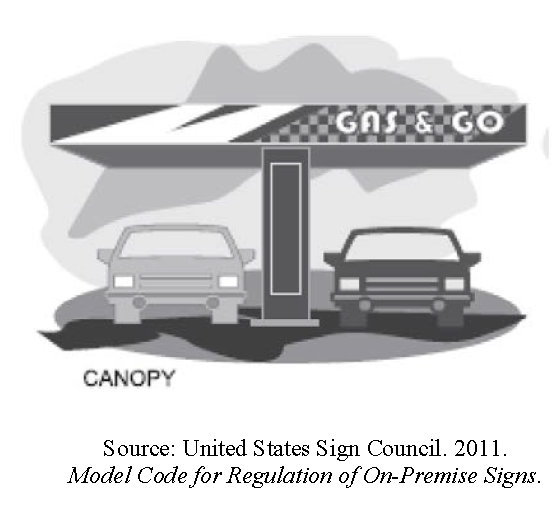 Canopy sign: A sign attached, painted on, or made an integral part of a canopy, whether that canopy is attached to a building or structure or freestanding. An attached canopy is a multi-sided structure or architectural projection supported by attachment to a building on one or more sides and also supported by columns or supports at additional points. Canopy signs, whether attached, painted on, or made an integral part of an attached canopy (including suspension underneath an attached canopy), are wall signs for the purposes of this article.