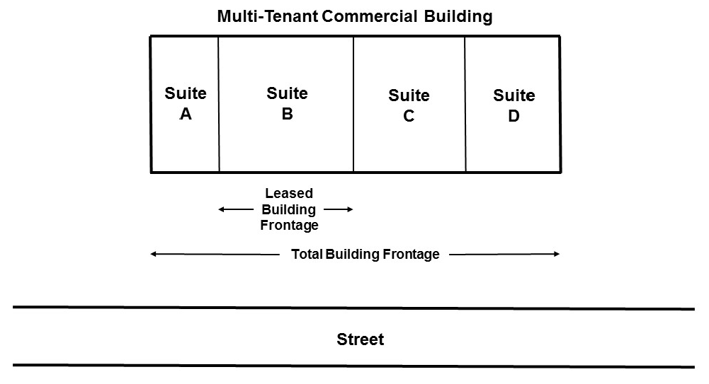 Building frontage: The width in linear feet of the front exterior wall of a particular building in which an establishment is located.