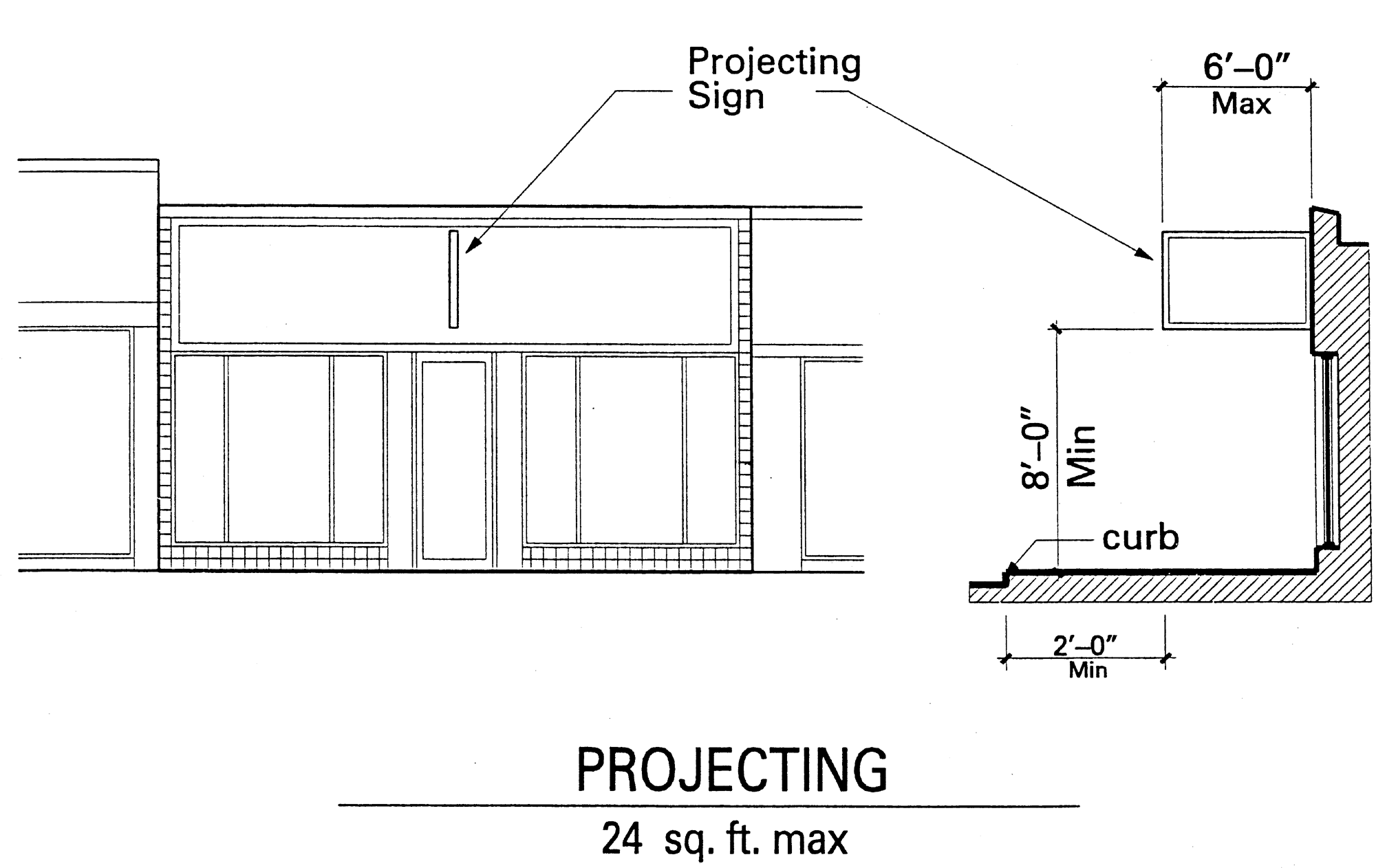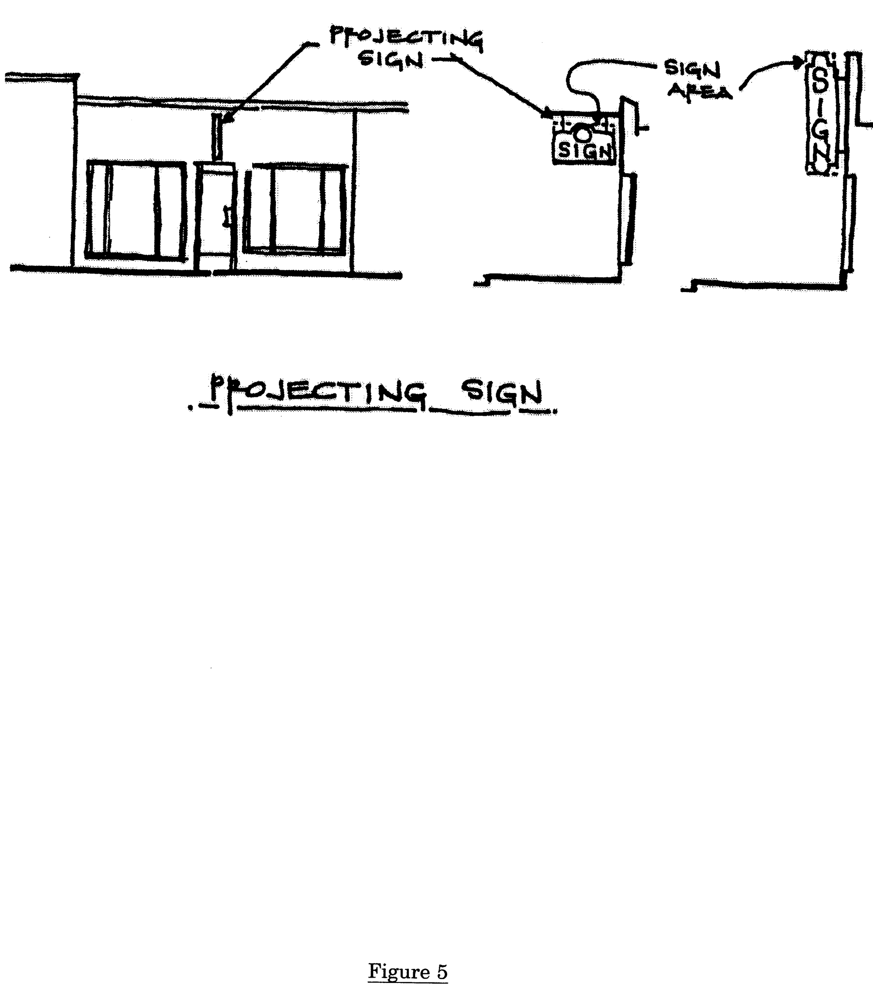 Projecting sign: A sign which is erected or supported on the wall of a building or other structure and projects from it. Signs which extend into or over public space or street right-of-way, including roof signs, shall be considered as projecting signs (Figure 5, located at the end of this Section).