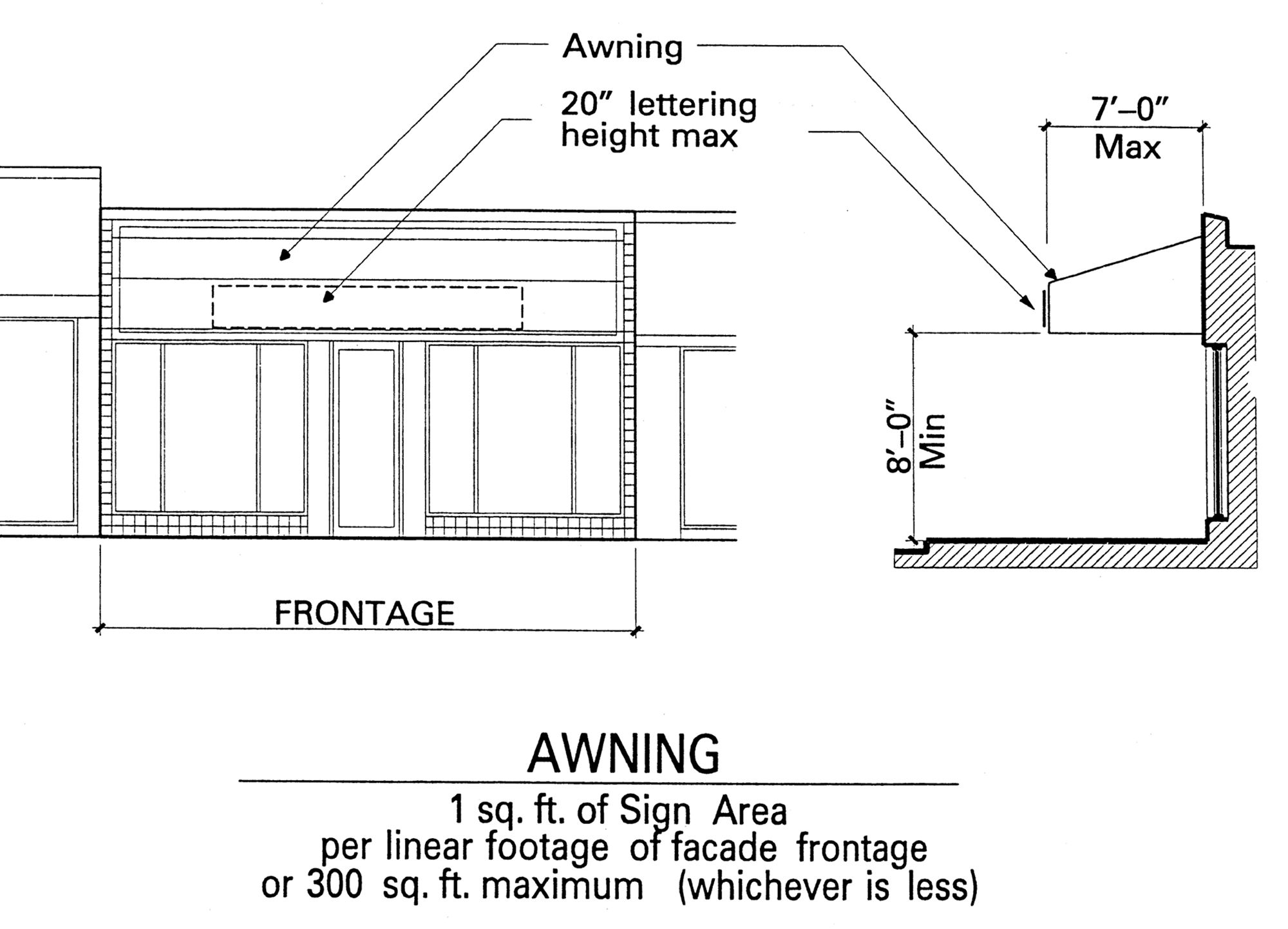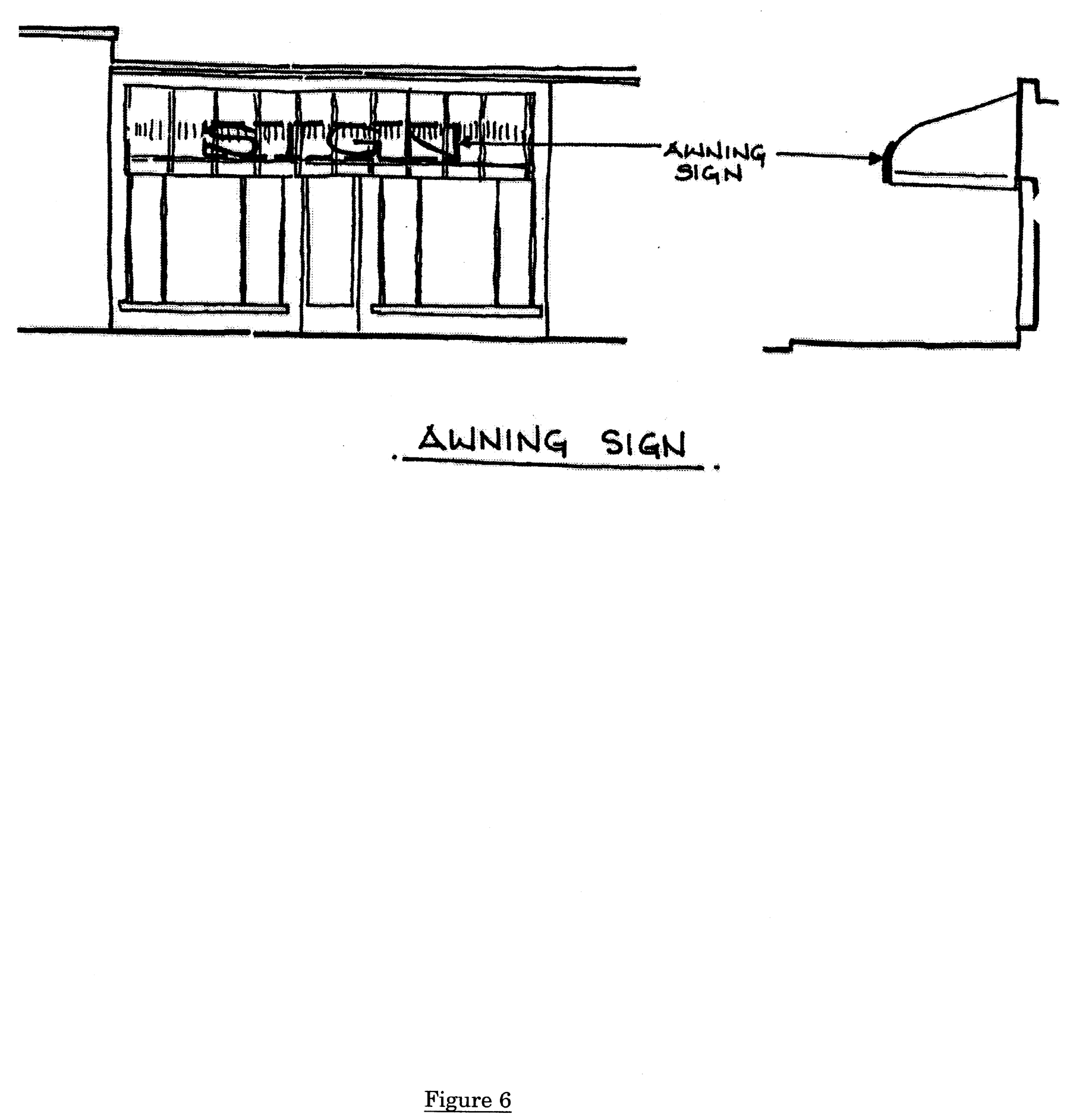 Awning sign means an awning with lettering placed on the canvas, or other approved flexible material, with a structural frame that is attached to a building. The awning sign shall not be placed above the roof elevation of a single story building or above the second floor of a multi-story building. An awning sign shall not be wind activated, or inflatable, such as a balloon (Figure 6, located at the end of this Section).