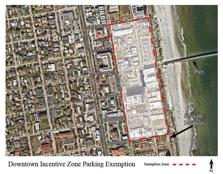 Parking exemption area means the area bordered by the boardwalk, Second Street North, 1st Avenue North, and 6th Avenue North that meet the following criteria:
