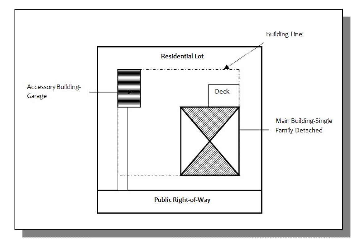 Accessory building or structure. A subordinate building or structure customarily incidental to and located upon the same lot occupied by the main use or building. With the exception of detached accessory apartments, as may be approved by a special use permit, no such accessory building or structure shall be used for housekeeping purposes. Garages or other accessory structures such as carports, porches, decks and stoops attached to the main building shall be considered part of the main building. Accessory buildings and structures located ten feet or less from a main structure shall be considered part of the main structure for the purpose of determining side and rear yards. (Refer to the definition of "structure.") Solely for the purposes of article VI, division 3 [of this chapter], an accessory building or structure shall be considered non-residential.