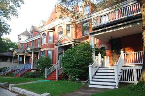 Attached house structures should complement the neighborhood through their design, location on the site, and building materials.