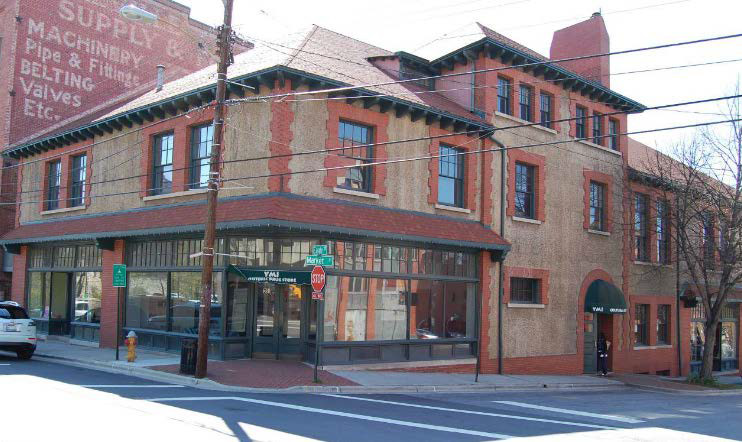 A. Two wall materials may be combined horizontally on one façade. The "heavier" material should be below the "lighter" material (i.e., brick below wood siding). B. Street level windows should be untinted. Tinted glass with a minimum visual transmittance factor of 35 is permitted. Mirrored or reflective glass is not permitted in any location. Techniques: A. All rooftop equipment shall be screened from view from public rights-of-way by a building material that matches the structure or is visually compatible with the structure. The screening apparatus should be incorporated as part of the architectural theme. |