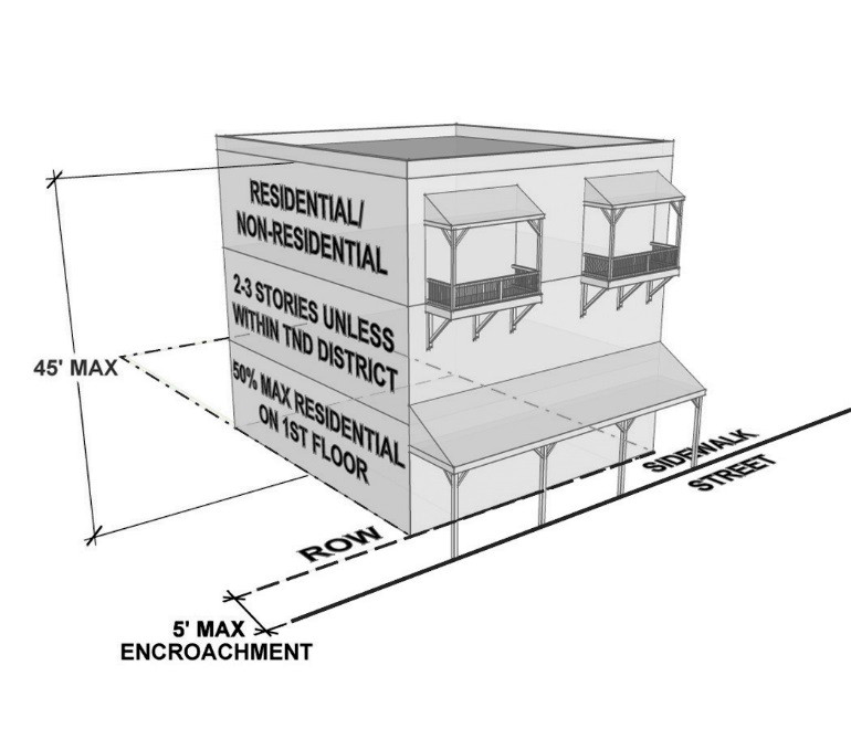 | 5. Buildings shall have no less than 2 stories. |