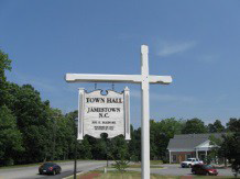 Use sign styles and designs that complement the architecture of the site where the signs are located. The Town of Jamestown is a historic town so using "period" signage is strongly encouraged.
