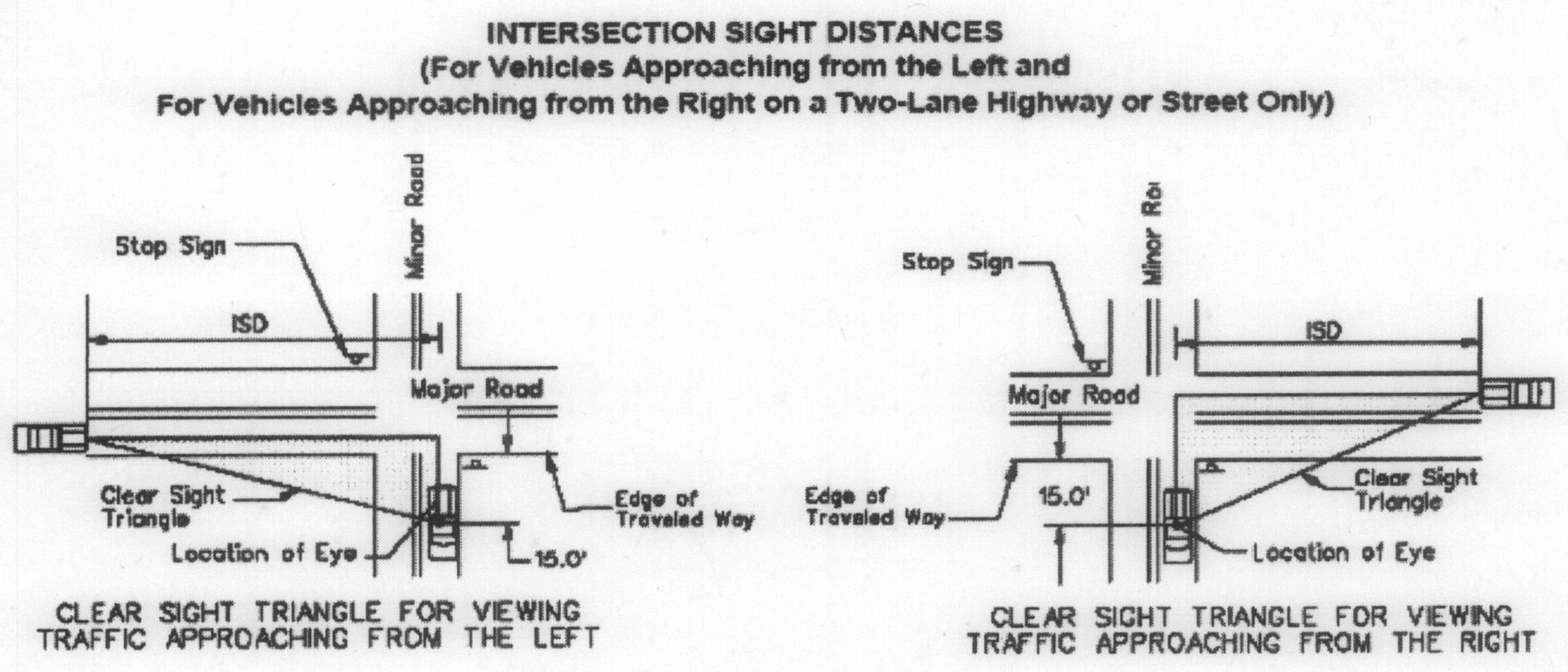 Vehicles used for commercial, industrial, or construction purposes are prohibited from parking in the front yards within residential zones unless on a driveway, nor within street/highway right-of-way in such districts, when not actively involved in commerce. Parking within the side and rear yards is allowed, but not within the setbacks.