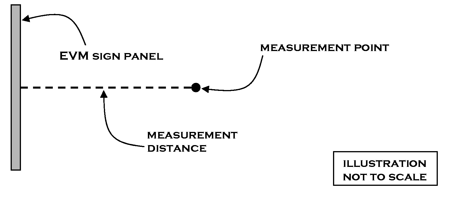 Based on the measurement distance calculated above, the illuminance shall be measured at a corresponding distance perpendicular to the center of the EVM sign face. See Figure 40.681.1, Measurement point (plan view).