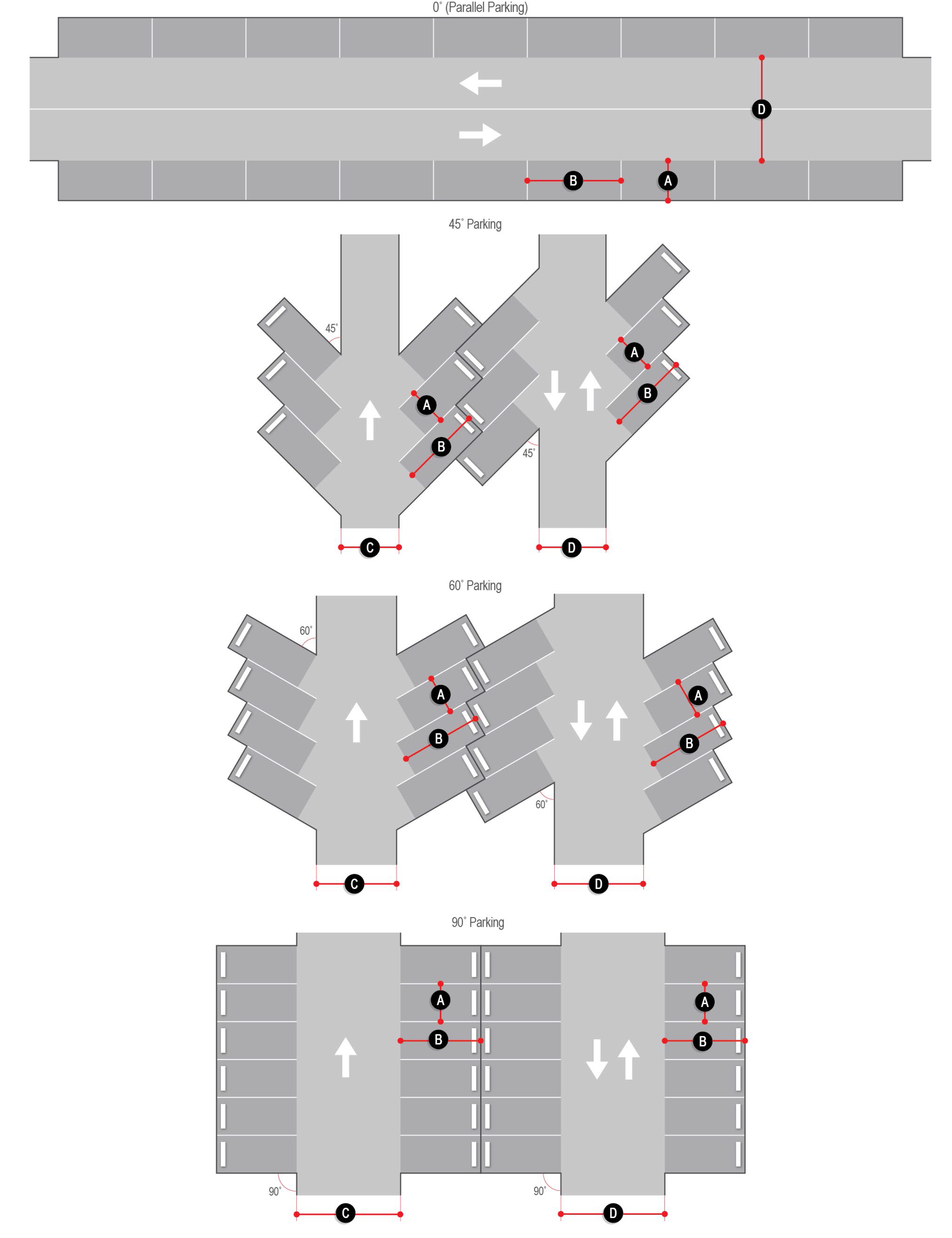 Parking Space and Drive Aisle Dimensions. Plans for the layout of off-street parking areas shall be in accordance with Table 16-6-1(D)(8). If wheel guards are used, stall lengths shall be measured from the internal face of the wheel guard. Two-way aisle width minimum standards shall apply to the total aisle, not a single lane.
