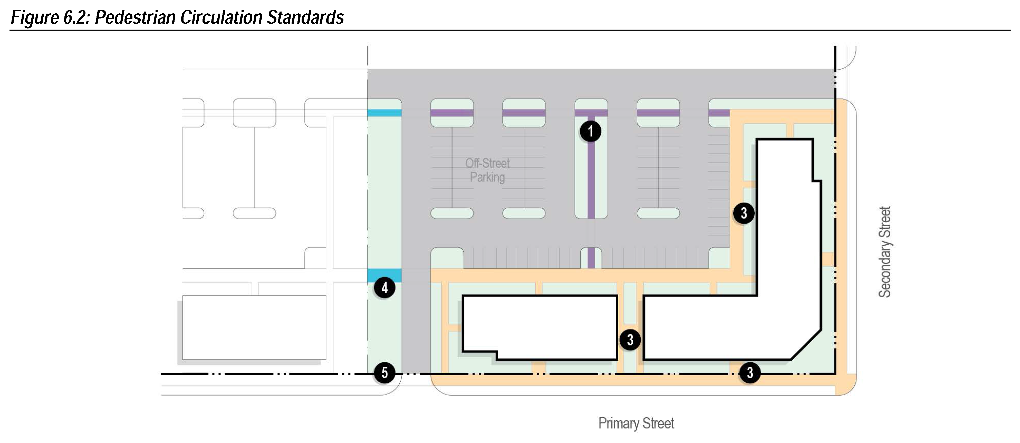 Off-street parking areas shall include on-site pedestrian circulation systems to ensure the safety of pedestrians, bicyclists, and motorists.