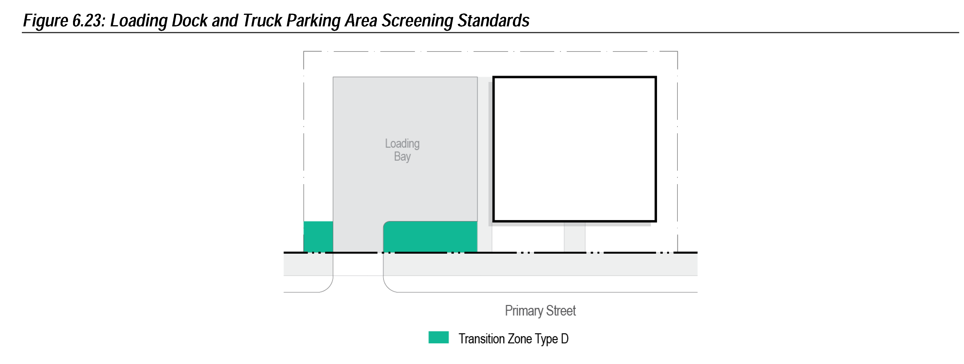 Setbacks. Off-street loading areas shall not be located within 50 feet of any abutting property which is within an R district unless it is wholly within an enclosed building or screened on all sides abutting the R district by a screening wall or fence.