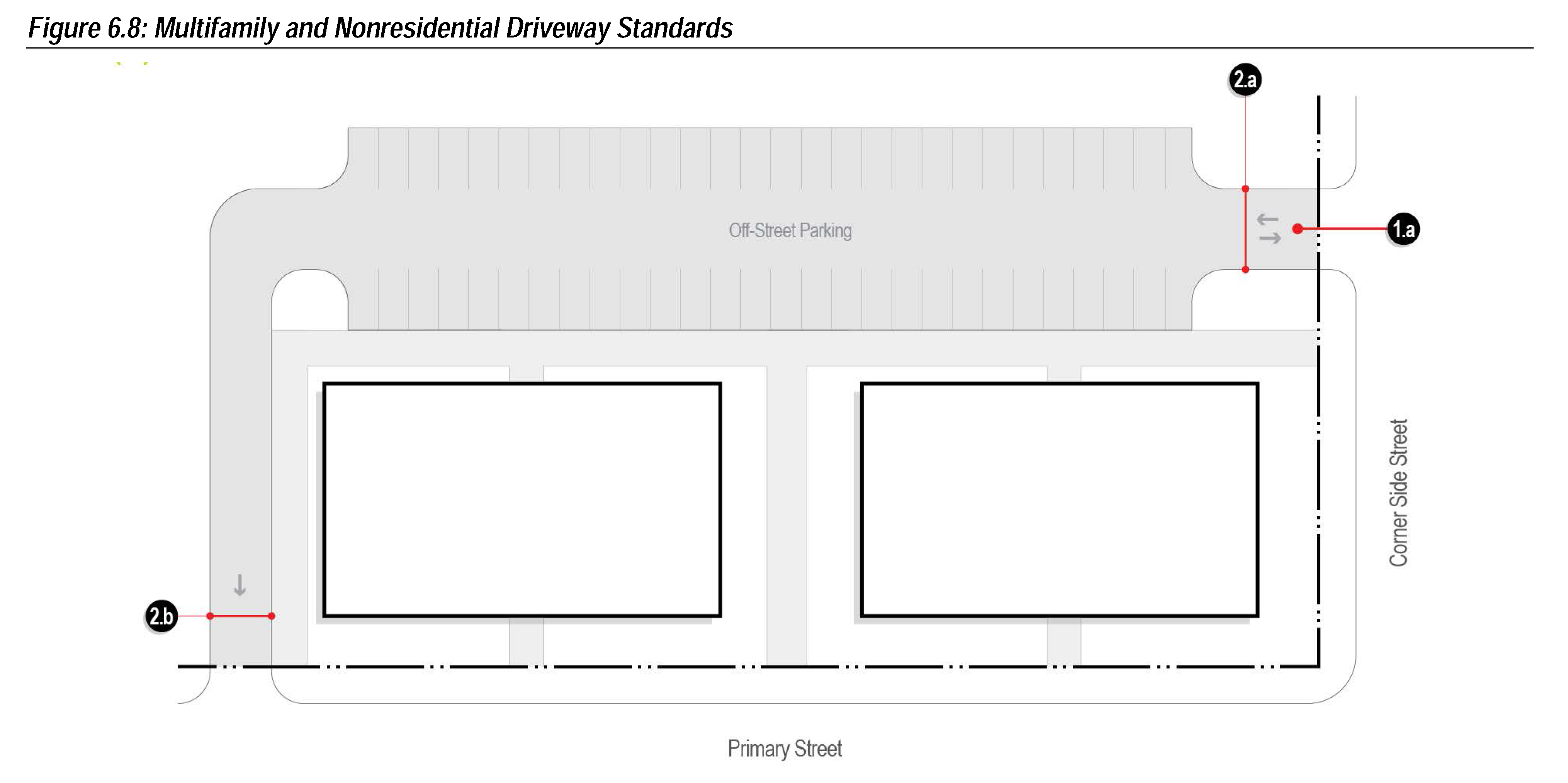 Cross Access. To facilitate vehicular access between adjoining developments and to minimize off-street parking area access points along streets and alleys, non-single-family development shall comply with the following standards: