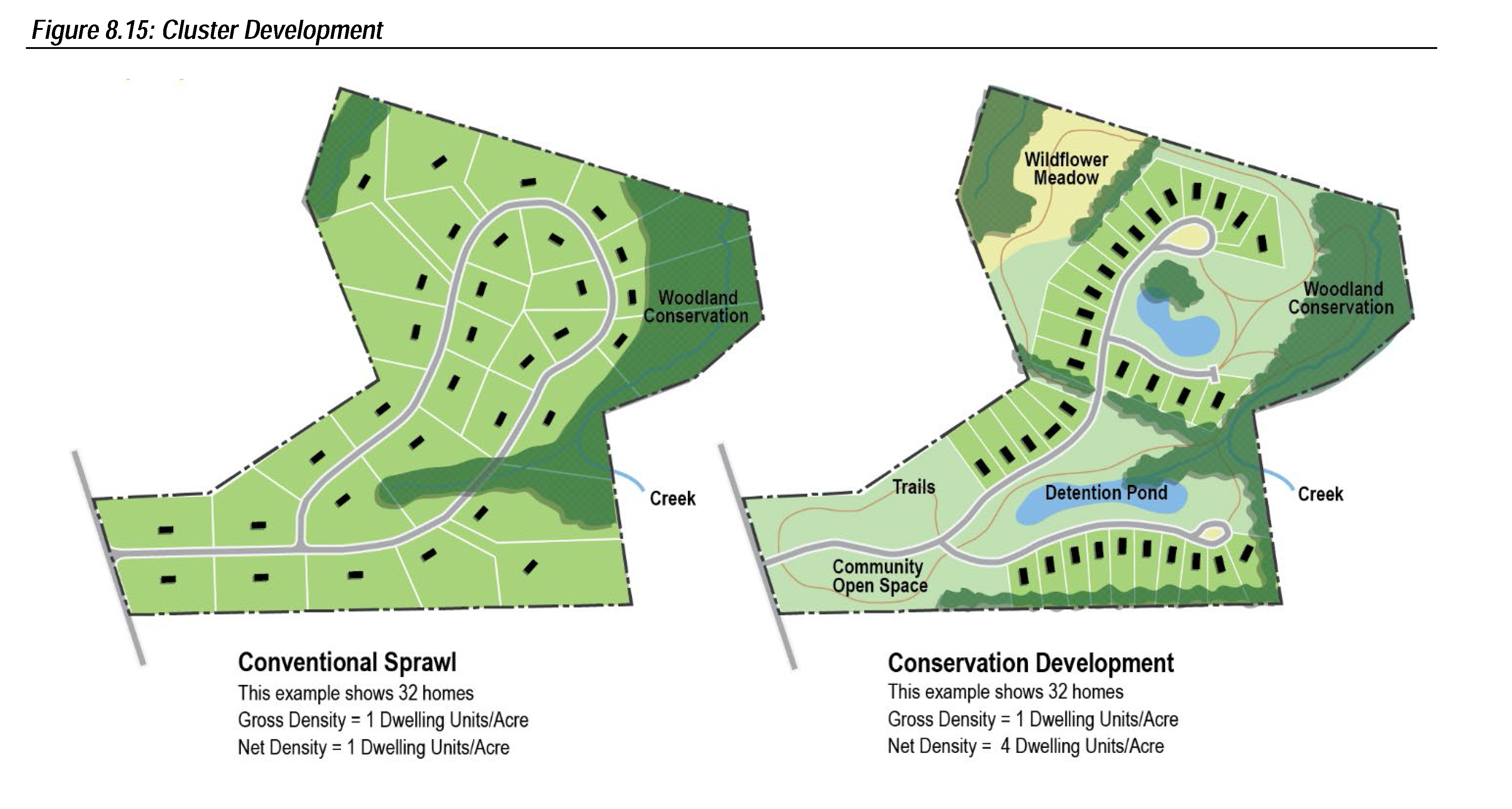 Cluster development is allowed in residential subdivisions in the RS1, RS2, RS3, and RD districts to encourage and accommodate, in a unified project, creative and imaginative approaches to development that preserve sensitive natural areas.