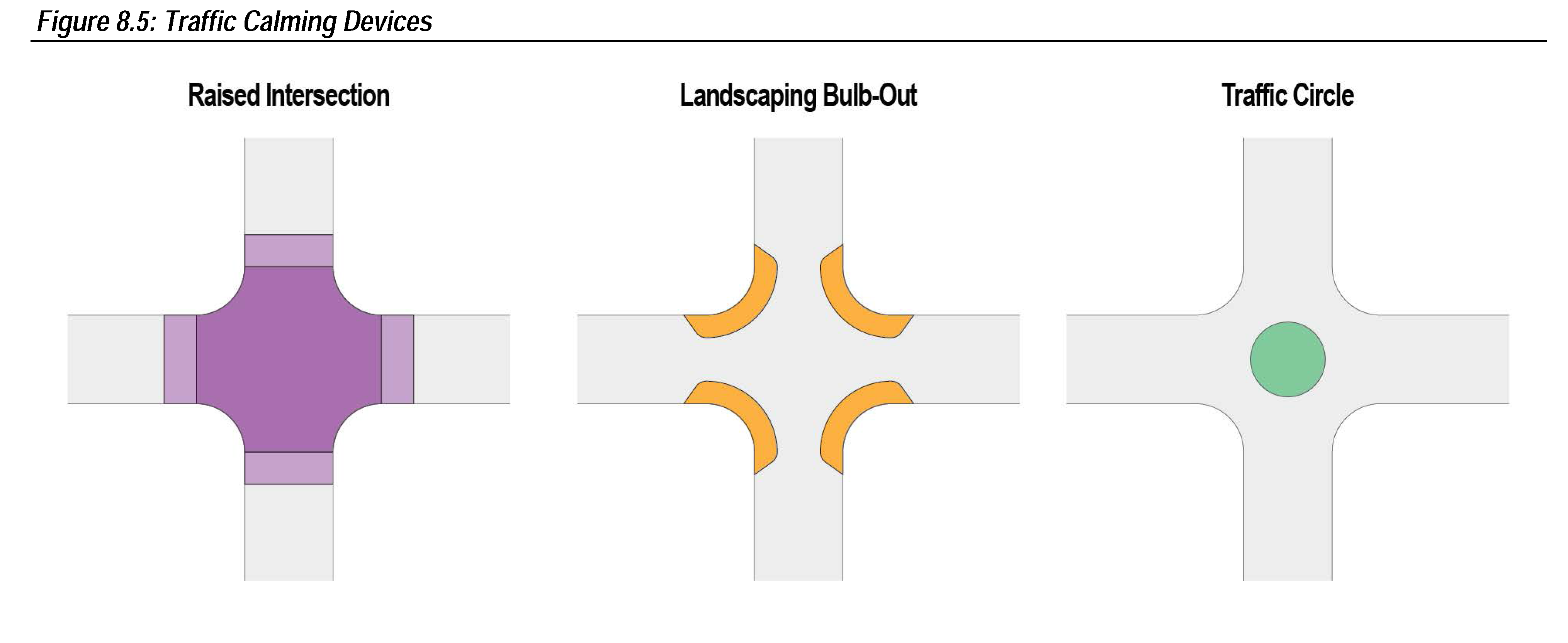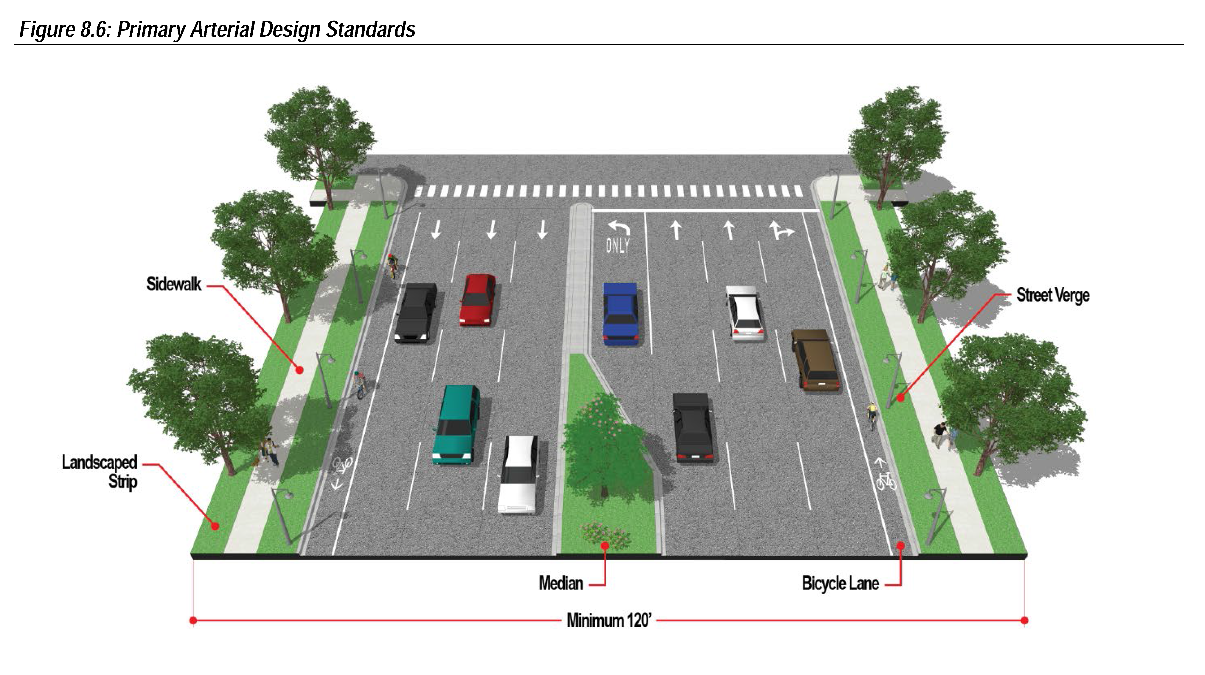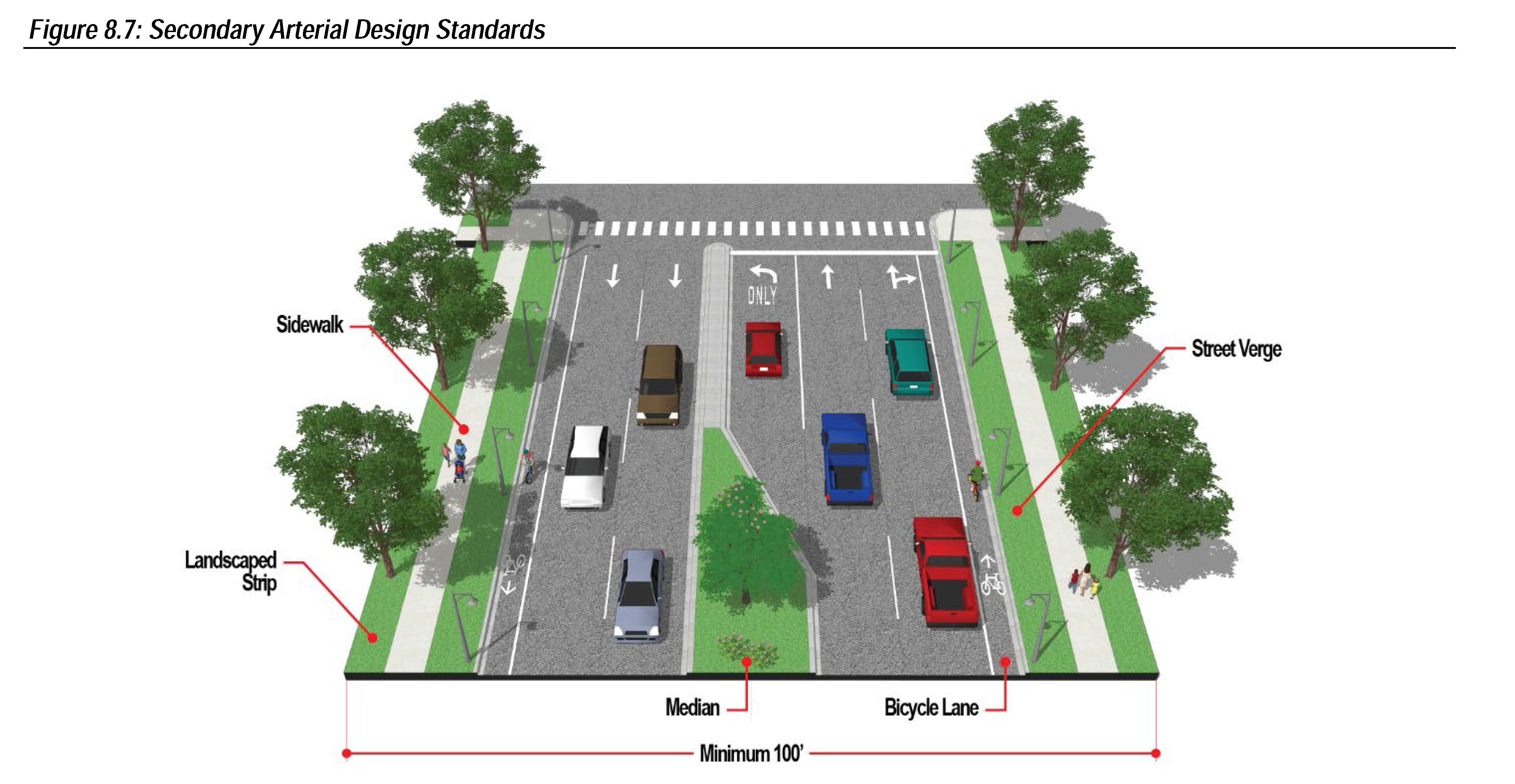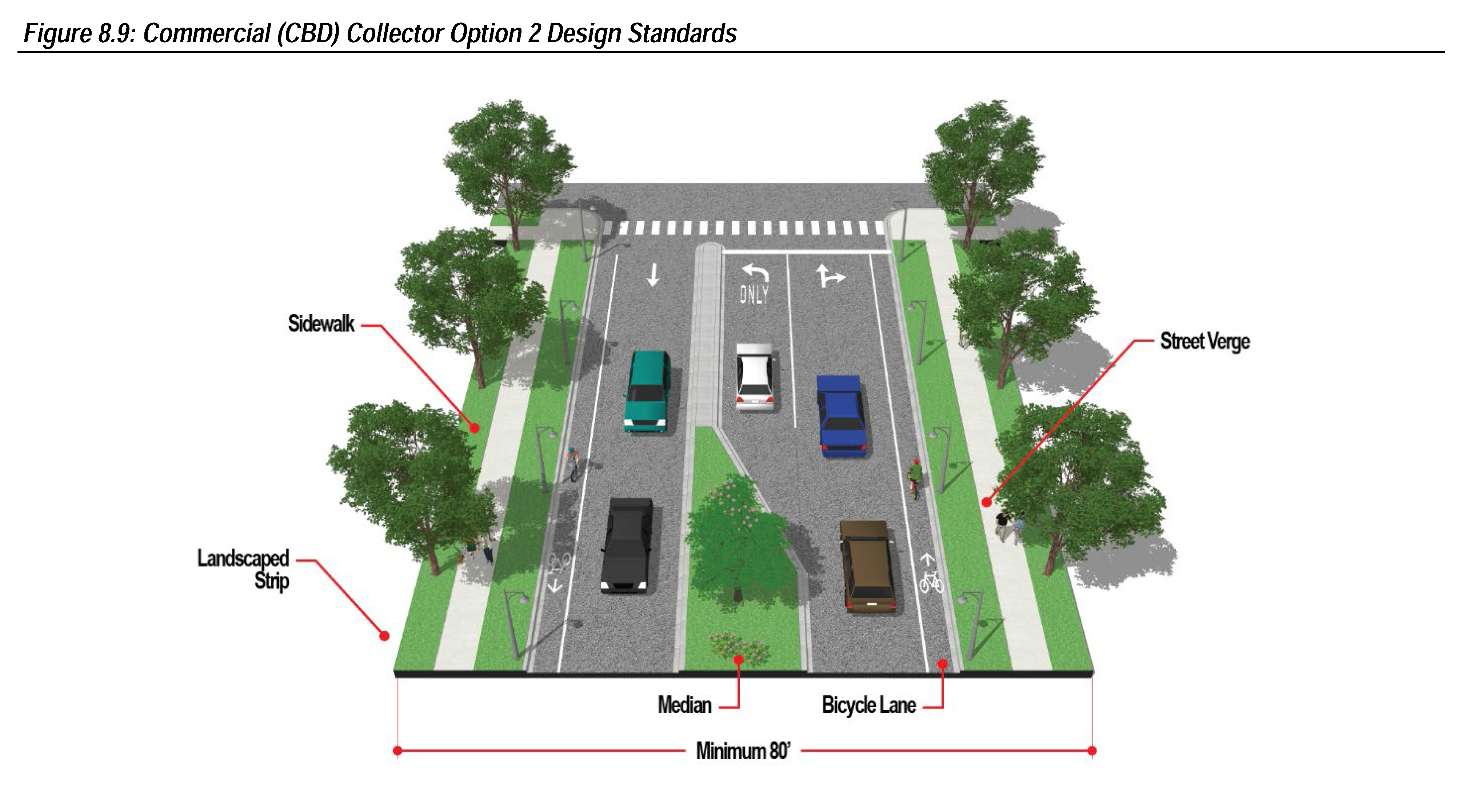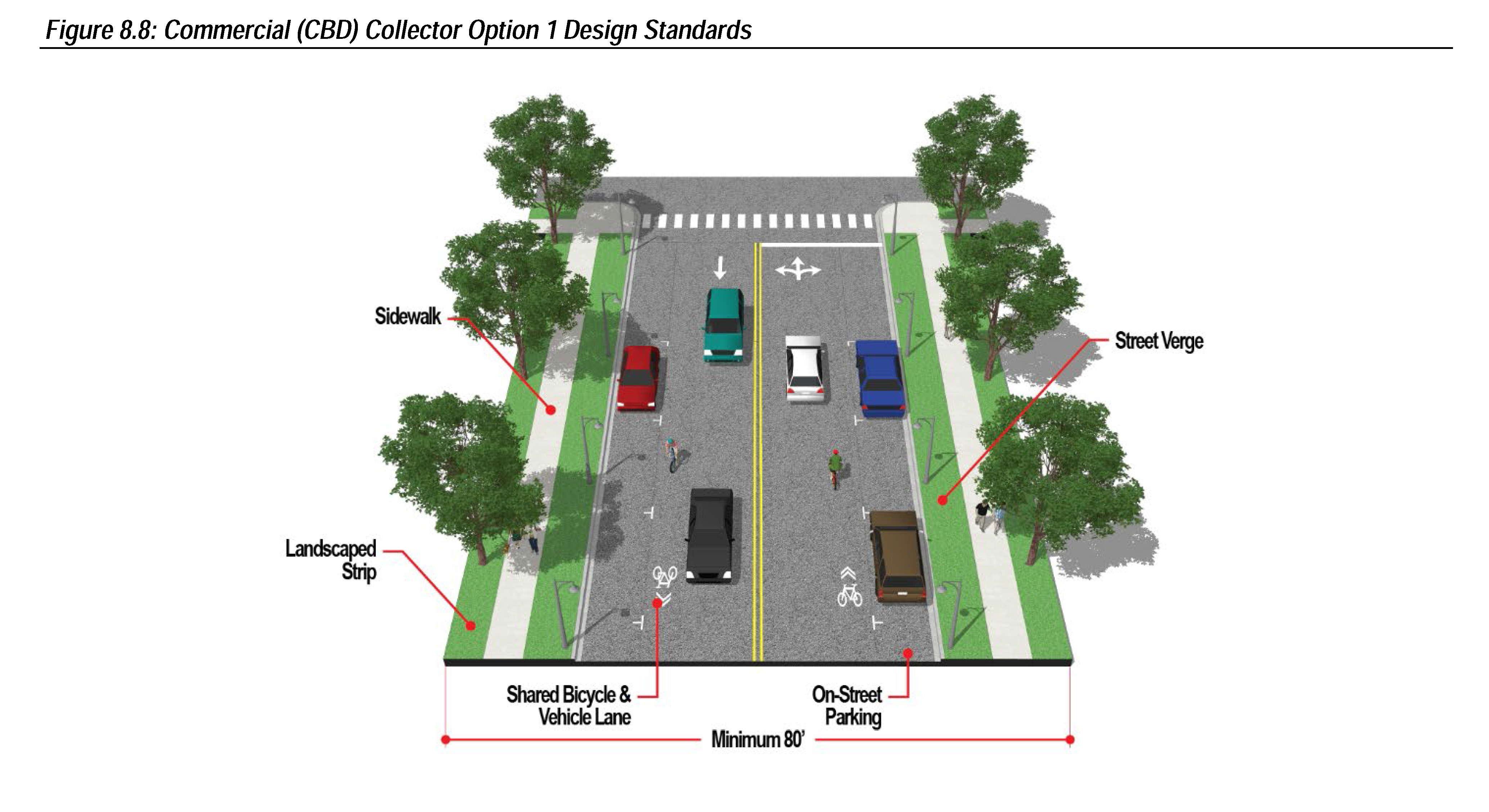 Required Street Design Elements. Required street design elements shall be as established per street type in Table 16-8-8 (K). A "•" indicates a required element. If options are provided for a street type, the City Engineer shall determine which option is required.